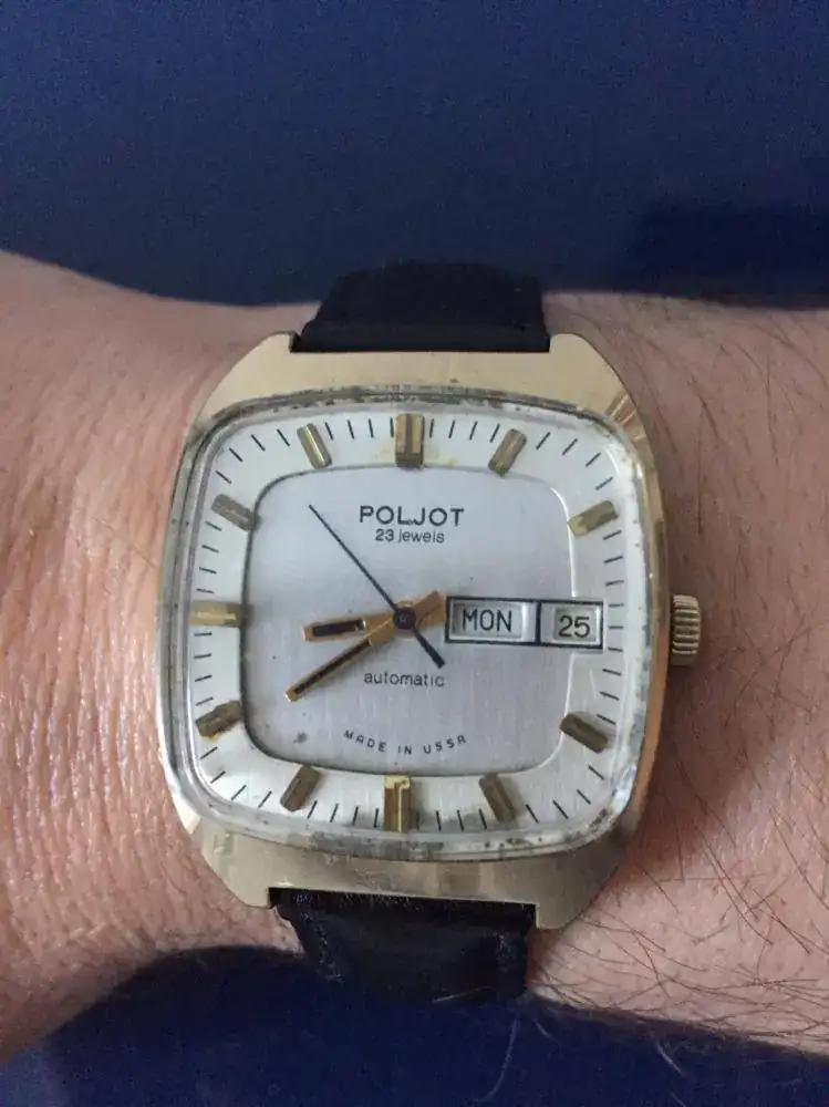 Hoy le toca a un rusito. En concreto, el primero que sacaron para el público occidental, que ya por aquel entonces se mostraba muy curioso y receptivo por los productos relojeriles del país comunista. El primero, sí. Véanse el “automatic” y el “MADE IN USSR”.