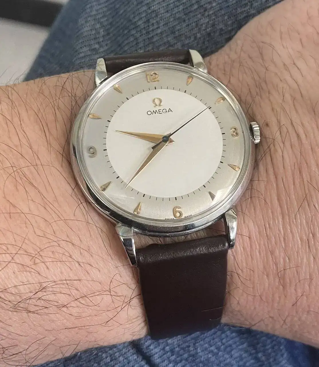 ¡¡Precioso!!. Sea o no sea original. Yo lo más parecido que tengo es este y lleva los minuteros por dentro del círculo. Omega hizo todo lo que le pareció