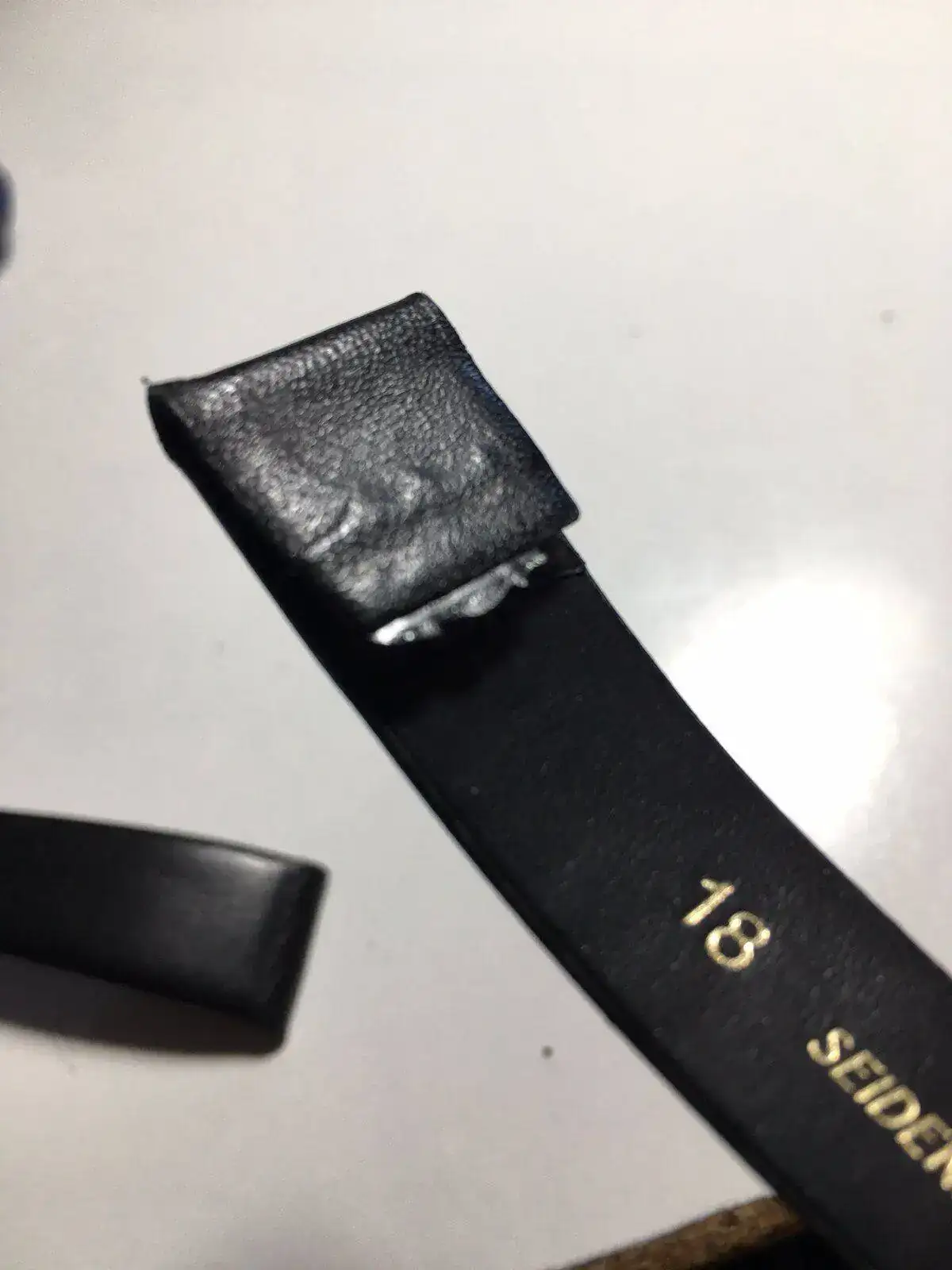 Ayer recibí una correa de un modelo que yo sabía que tenia que existir, pero son poco usuales (con la parte que va al pasador adhesiva), pienso que se podría pegar y despegar cuantas veces quisiera siempre con cuidado