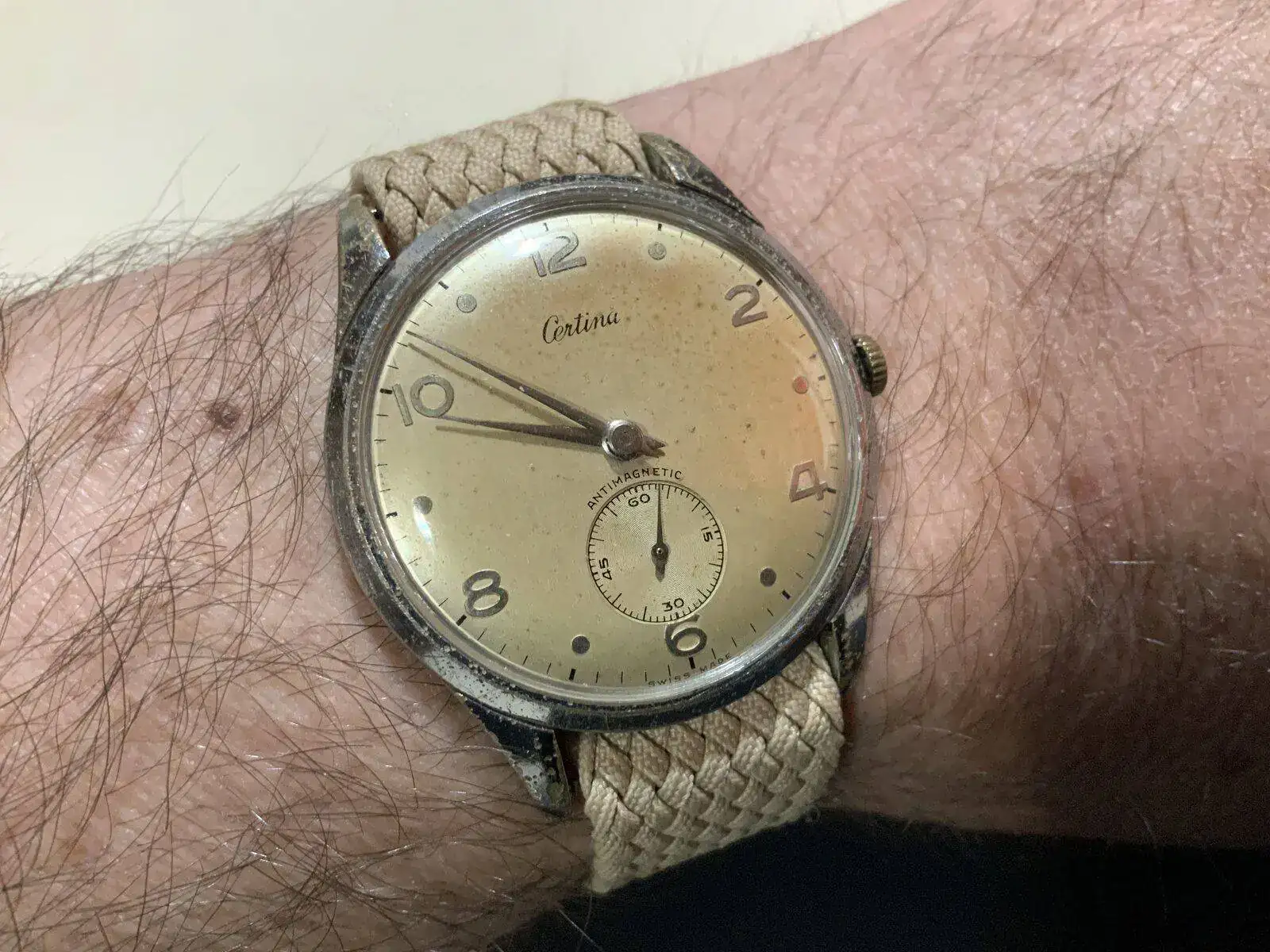 La parte horaria no parece ir mal pero la crono.... Arranca y se para siempre en el mismo sitio hasta que le das unos golpecitos y continúa. Un pulsador no tiene muelle y esta pelin torcido. Lo de la aguja es lo de menos.