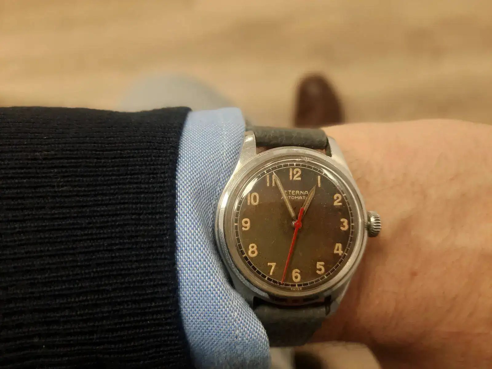 Flamante caja, con perfecta platina, en la esfera.Comparto con mi amiga Abde una reflexión que hizo ayer, lejos de parecer inapropiado el mostrar en este rincón nuestras aficiones añadidas a la relojería, es justo al contario, la enriquecen. Son muestra de creatividad, de inquietud artística, y eso, en tiempos oscuros, nos hace mejores. Como no quisiera dejarme a nadie en el tintero, sólo citaré disciplinas: música y canciones, fotos de relojes, paisajes y flores, de arquitectura, dibujo y pintura, talla en madera, trabajos en cuero ... y como no, PUERTAS¡¡¡¡