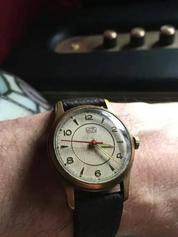Hoy vamos a salir con uno que estuvo a la espera de su reparación durante al menos 9 años, y por cuestiones de tiempo y también por no tener un relojero de confianza estuvo esperando pacientemente su turno, hasta el día sábado que es maestro Serrano pudo hacer el milagro, el reloj camina de maravilla, posee el 85% de su laminado original y con sus casi 4cm de diámetro sin corona parece que tuviera en mi muñeca el reloj de una torre. No saben las ganas que tenia de usarlo, bueno ni se diga mi padre que lo usará mas que yo, y a decir verdad le queda mucho mejor a el que a mi JAJAJAJA. Sin mas que añadir lo presento por primera vez.