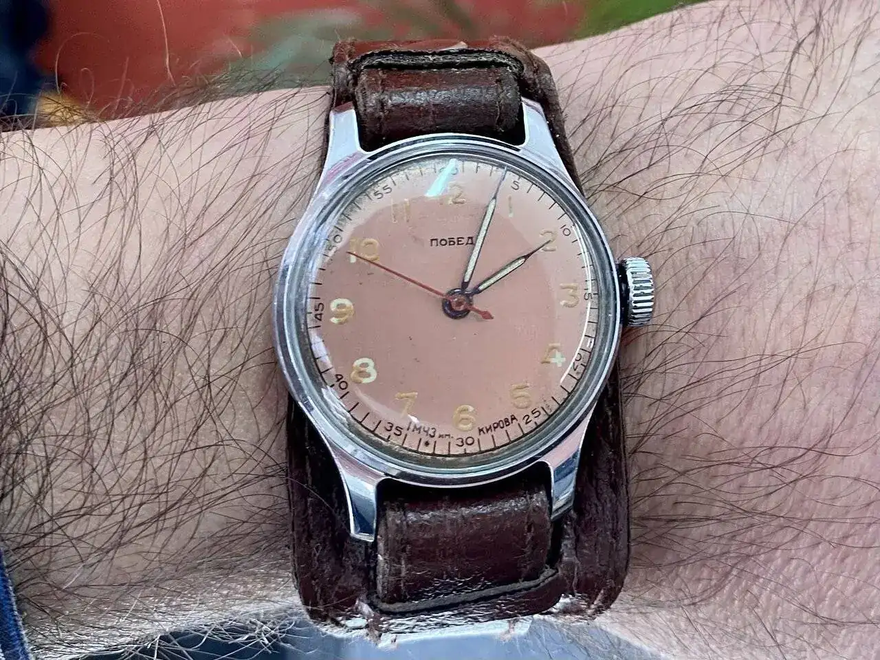 Al igual que al compañero, gracias por aportar más información al Pobeda, me parece muy interesante toda la aportación que habéis hecho y que ayuda a conocer un poco más un reloj.A mí estos Pobeda reparados por partes me parecen muy interesantes, ya que cuentan una de las virtudes de la industria relojera soviética, y en concreto de la marca Pobeda: el que fuesen relojes que, aún saliendo de fábricas distintas, tuviesen piezas intercambiables y cualquier relojero de una nación tan extensa los pudiese reparar con desguaces de otros relojes. A lo dicho por Julio, añadiría los datos de que la esfera es de la Primera Fábrica de Moscú, y la máquina es de ZIM (Factoría Maslennikov). La esfera es mucho más antigua (1946-1956) que el calibre, ya que la máquina, al carecer de decoración y marcajes característicos, se puede datar en los años 70-90. La de ZIM es una factoría muy interesante al hablar de la marca Pobeda, ya que es la fábrica que durante más tiempo los fabricó, con diferencia: desde 1950 al 2004.