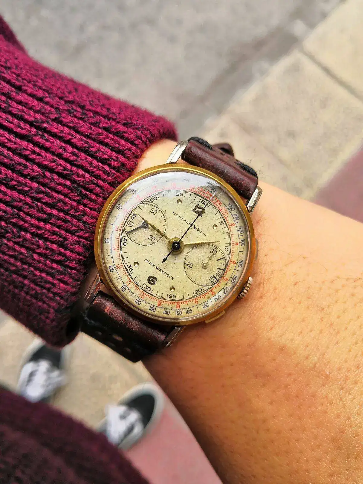 Buen martes!! Hoy saco a pasear mi único Crono Vintage al que le tengo gran cariño. La caja es chapada, pero se le ha caido gran parte. ¿Qué opináis de rechaparlo en oro o, en su defecto, cromarlo para que quede plateada la caja? Llevo tiempo dándole vueltas y no me decido :pardon: