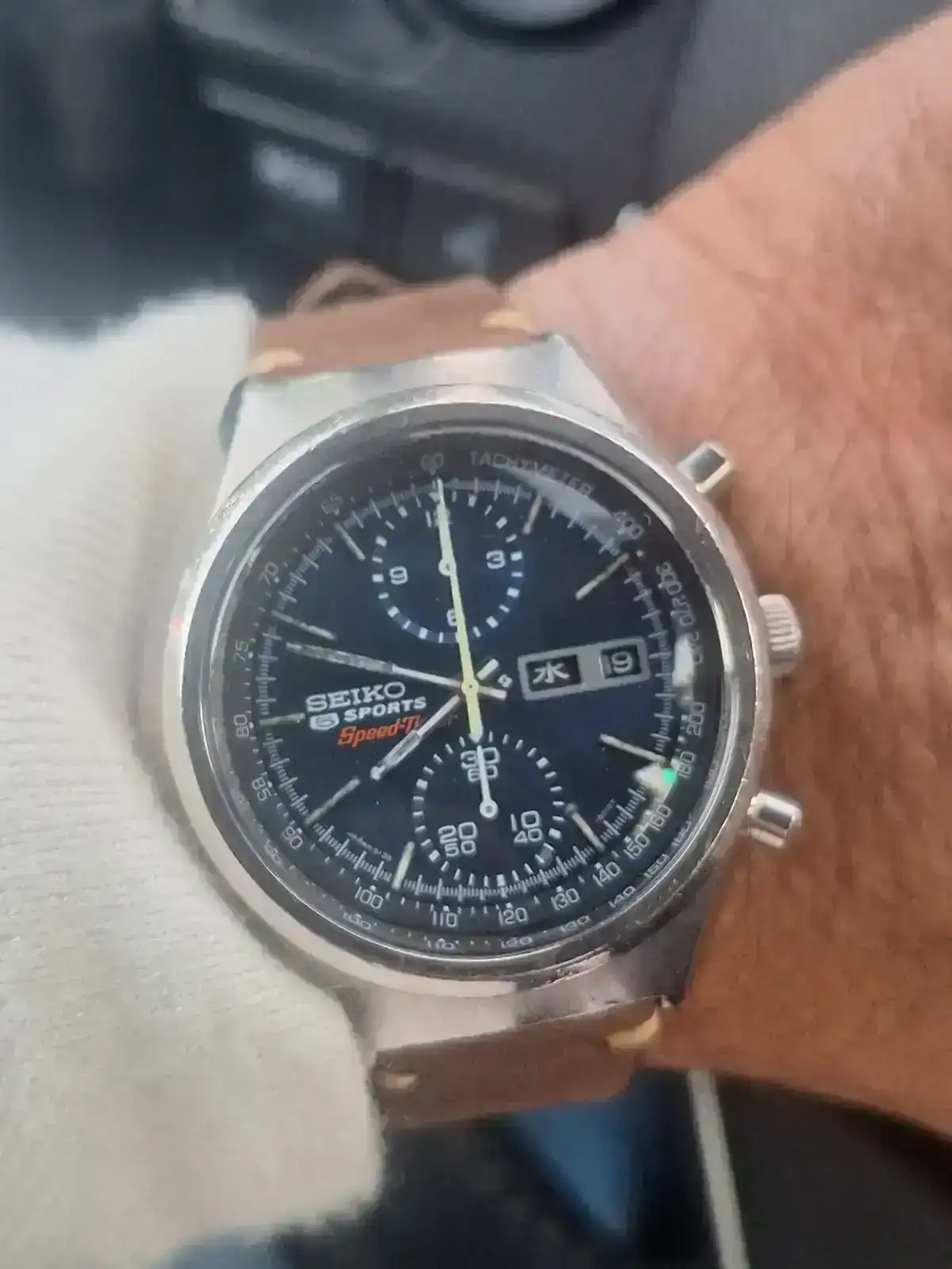 ¡Qué maravilla!Yo también estreno, también crono, también japonés y de todos azules. Por desgracia no es un grial de nadaEs un Neon - vintage.