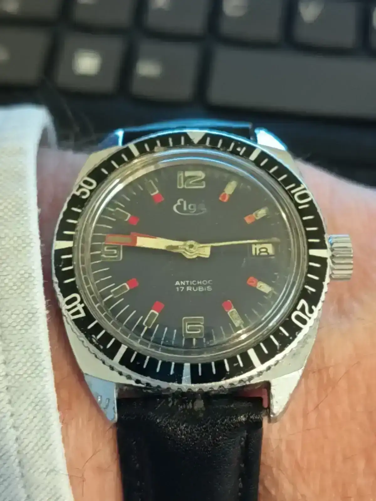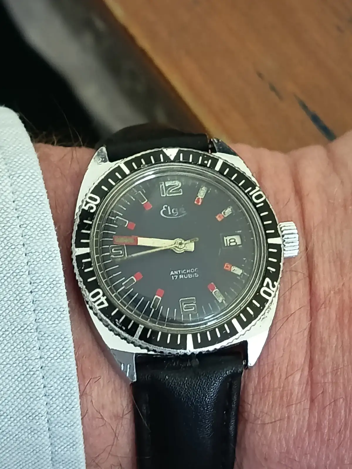 Que curioso,Juan. Precisamente ayer estaba buscando entre mis relojes para llevar a reparar y encontré un Elgesa (Elgé) parecido al tuyo. Creo que era una marca francesa que ha sido recuperada recientemente.Buenos días: