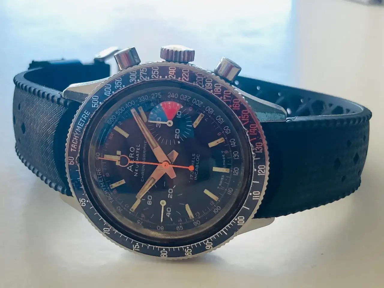 Tenía a este Mido Commander (que tengo dos) aparcado con su preciosa ETA2834-1A (Chronometer) con el plexi desgastado, la caja monobloque sucia, fallos en la marcha por el Etachron y escape, cambio de fecha no exacto y con salto trémulo; una pena.