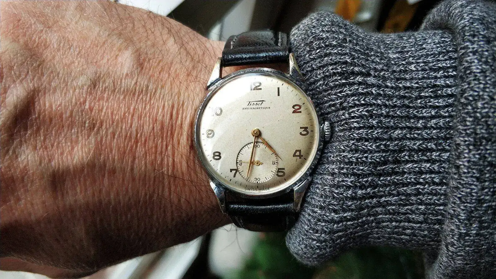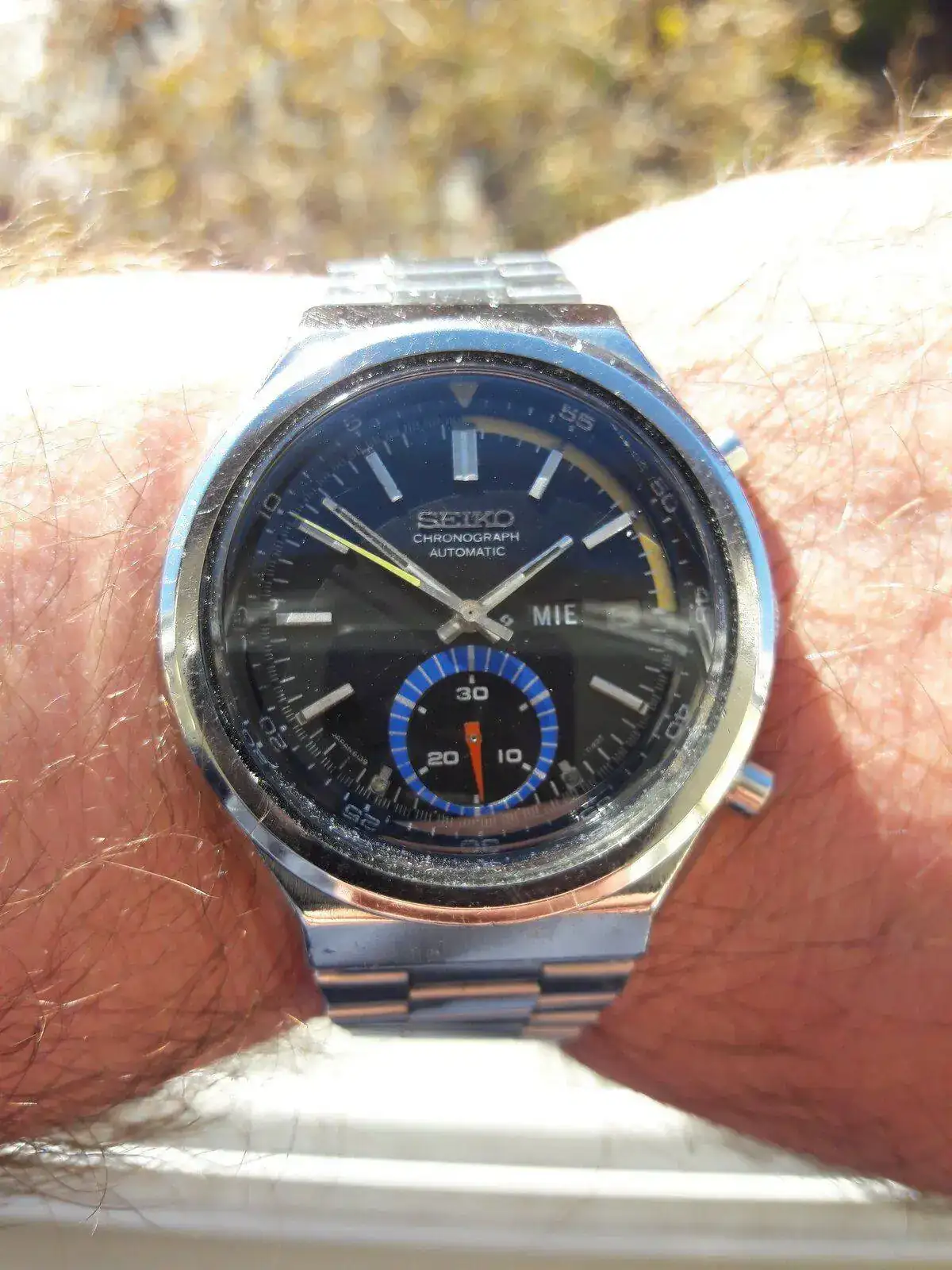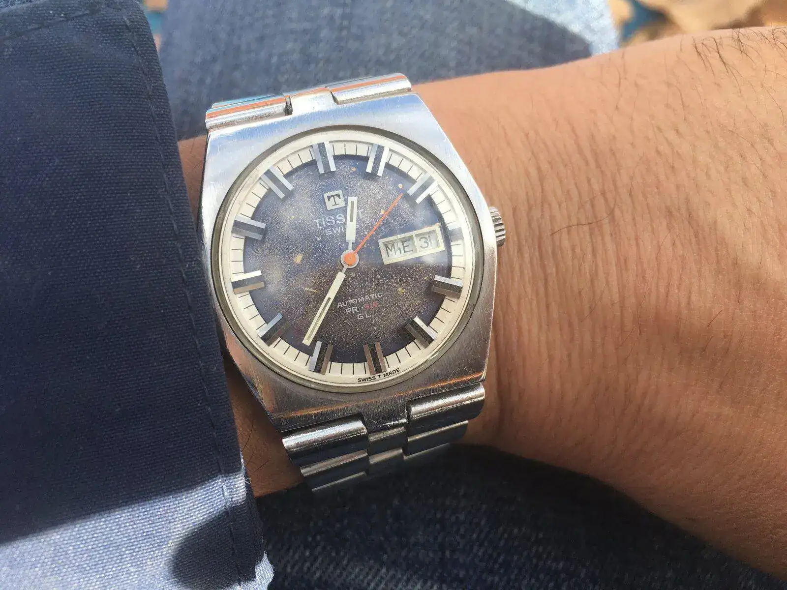 Todo eso es una minucia en un reloj de 50 años, amigo David. Para mí la trotadora es original. Yo las aftermarket que he visto son de latón. Lo único que debería ser roja, pero eso tiene fácil solución con una manita de pintura.Gracias Kike. El brazalete no es el suyo y la trotadora del crono no me convence pero el precio fue insultantemente bueno. Le faltan un par de puntos de Lumen a la esfera.
