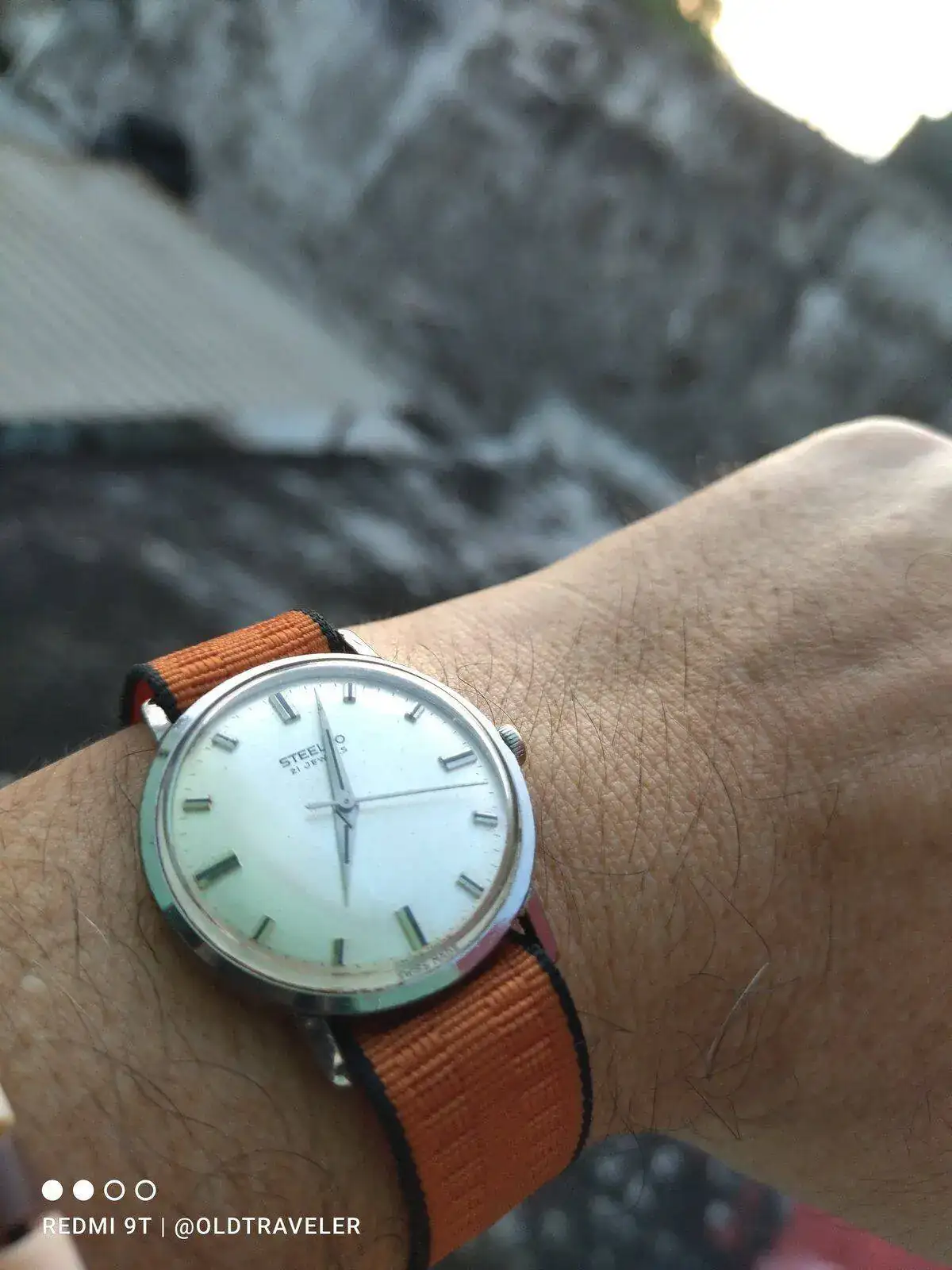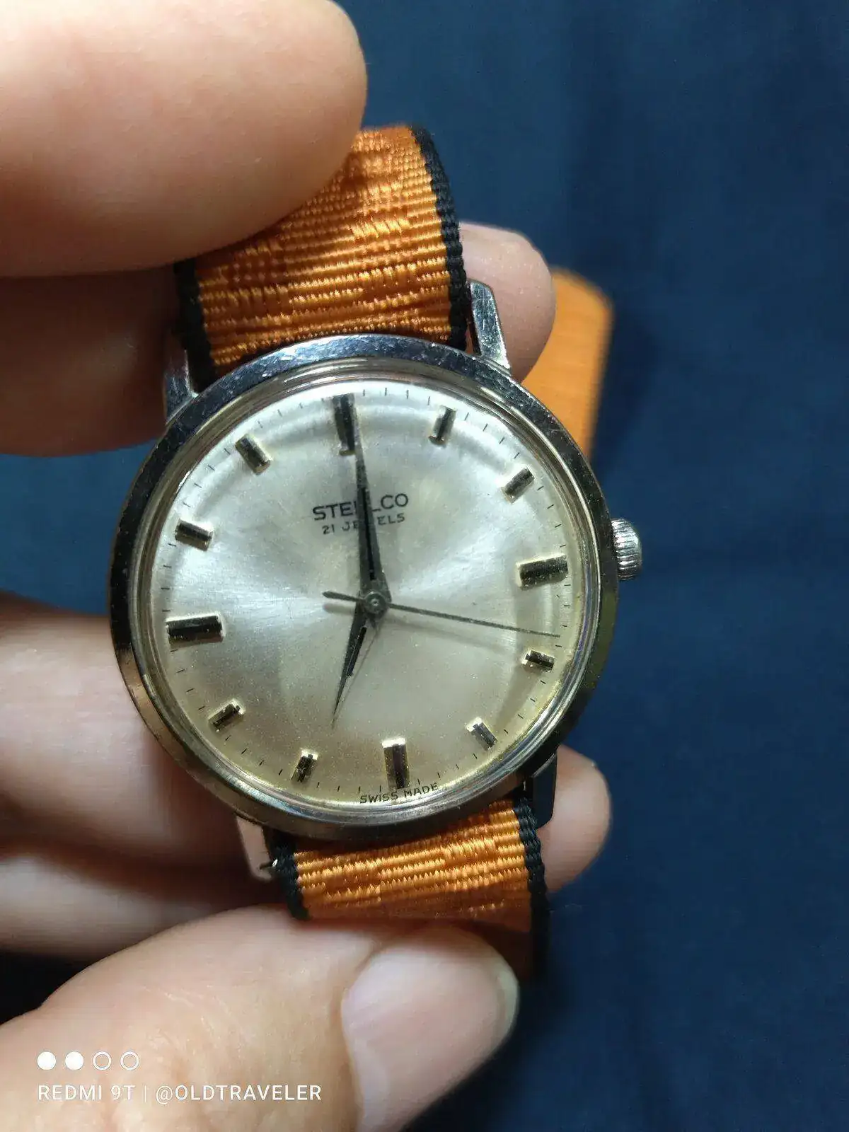 Para la ocasion, le he puesto una correa textil de la epoca, que segun yo, le sienta perfectamente, y acentúa su ligereza, les presento a otro venerable "abuelete" de mi coleccion, un Steelco , la marca hermana de Haste (aqui en el foro hay un excelente articulo sobre la marca, lo hallé cuando aun no pertenecía a este foro y estaba buscando información, se titula "Haste, el milagro mexicano" creo recordar).