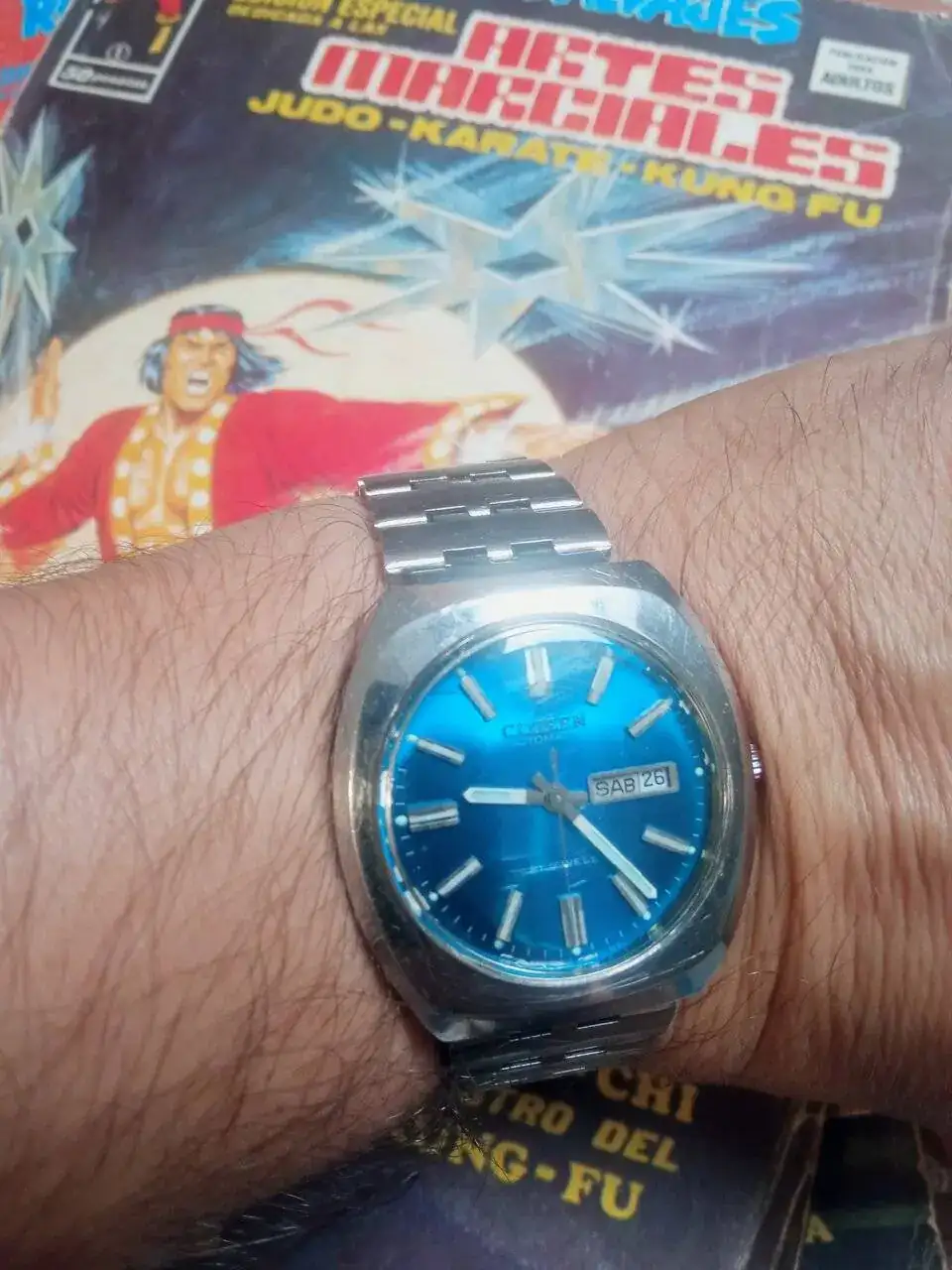Me encanta su simetría, por supuesto valoro enormemente su mítico calibre quartz y sobre todo su raro y difícil de fotografiar color azul ¿petróleo?.
