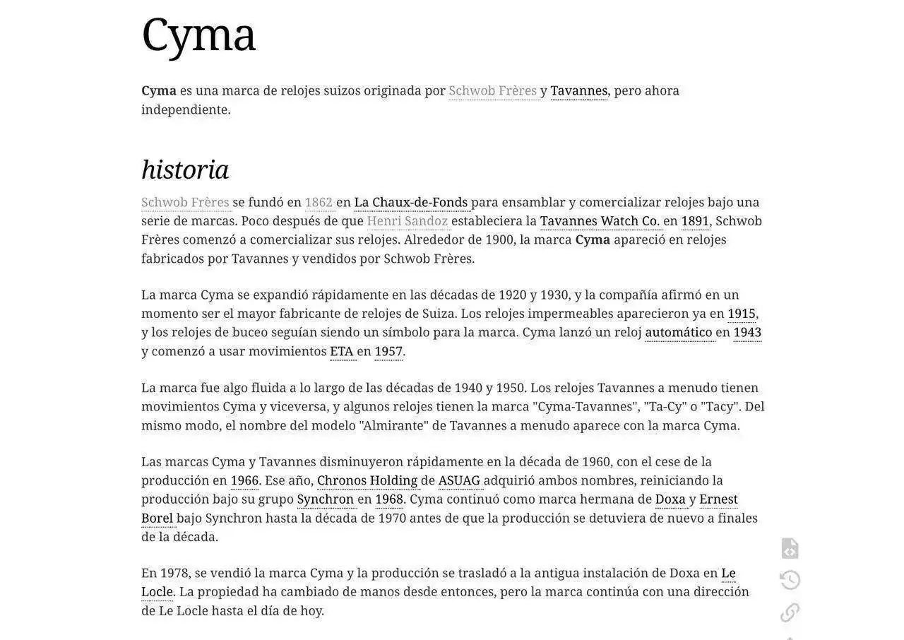 Por lo que leí en este foro, a mediados de los años '60, Cyma dejó de producir sus propios movimientos y empezó a montar maquinarias ETA.