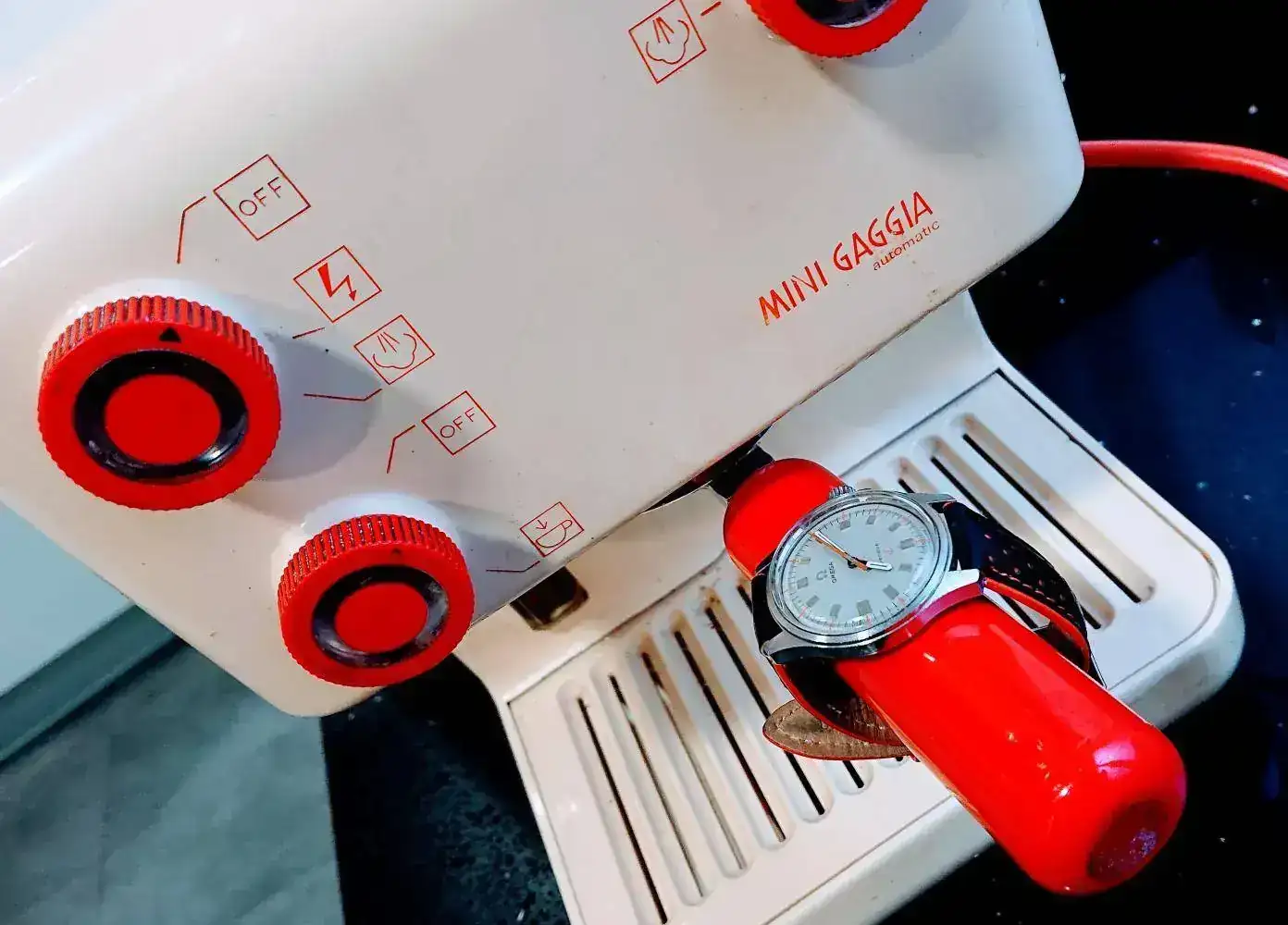 Hoy ha vuelto al servicio una vieja amiga ya retirada, tras el fallo de una jovenzuela que llegó mucho después, y me ha hecho ilusión volver a verla, así que la he afotado y he escogido esta ancorina prestada-robada que pega muy bien con ella ¡¡Y qué café sigue haciendo, señores!!
