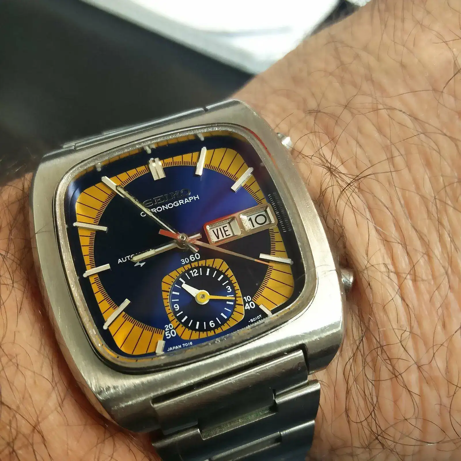 Que pasada!!! Preciosa restauración y precioso reloj🤩🤩🤩Buenos días y gracias a Mazel por la apertura del hilo. Lo del buenos días es por decir algo que como dice al compañero Txema, llevamos 20 días con lluvia, viento y sin ver el sol. Con este tiempo da un poco de miedo sacar a pasear a los más ancianos del lugar que uno se queda calado en segundos. Tras un paréntesis por motivos laborales, sigo con la recuperación del lote de Seikos y ahora ya está casi terminado el 7016 5011 al que ya solo le falta un alargador de armis ya que me queda algo justo y doy por perdido encontrar algún eslabón a precio razonable. Tras dudar, primero lo he montado con su esfera original, como es para mí, le he cambiado la esfera por una after market que me ha parecido digna y que ya tenía comprada.