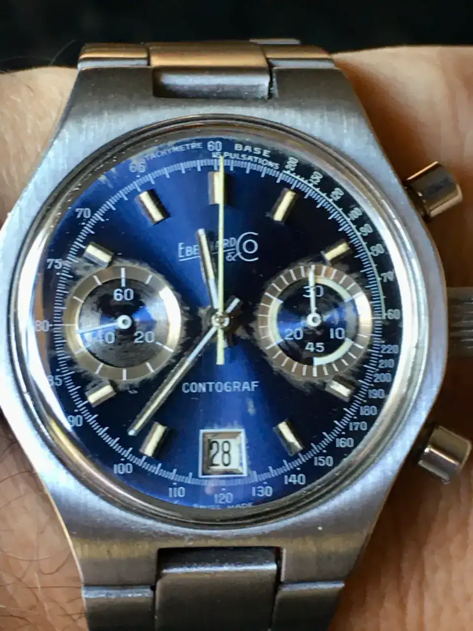 Añado dos fotos de la esfera del Eberhard donde de aprecia el desgaste de la esfera , no muy uniforme pero si muy definido en las subesferas
