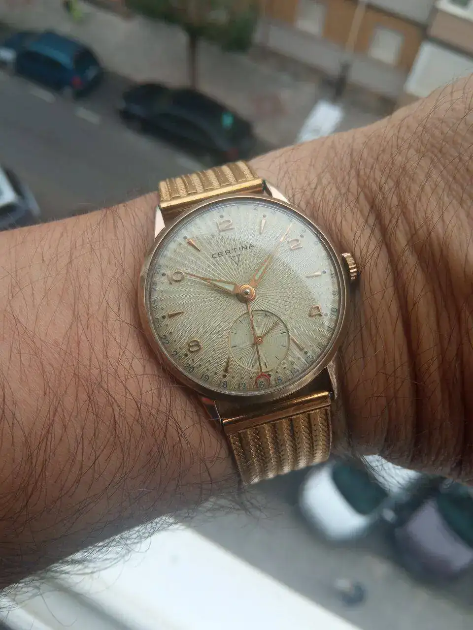 Y nuestro Ger 💖Bien chulo es ¡¡ y la correa le queda bien.Buenos días y gracias, Elena por abrir el hilo -tu primer open!- en este viernes. Espero y deseo que ese regalo sea todo un éxito como tú entrada en este foro, o sea seguro que si!. Os acompaño con un Certina que creo que fue el primer reloj que compré en el rastro hace mogollón de años cuando no sabía lo que compraba. Estaba destrozado y se le tuvo que cambiar la caja. Hacía tiempo que no me lo ponía...