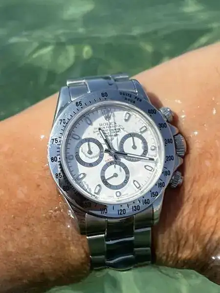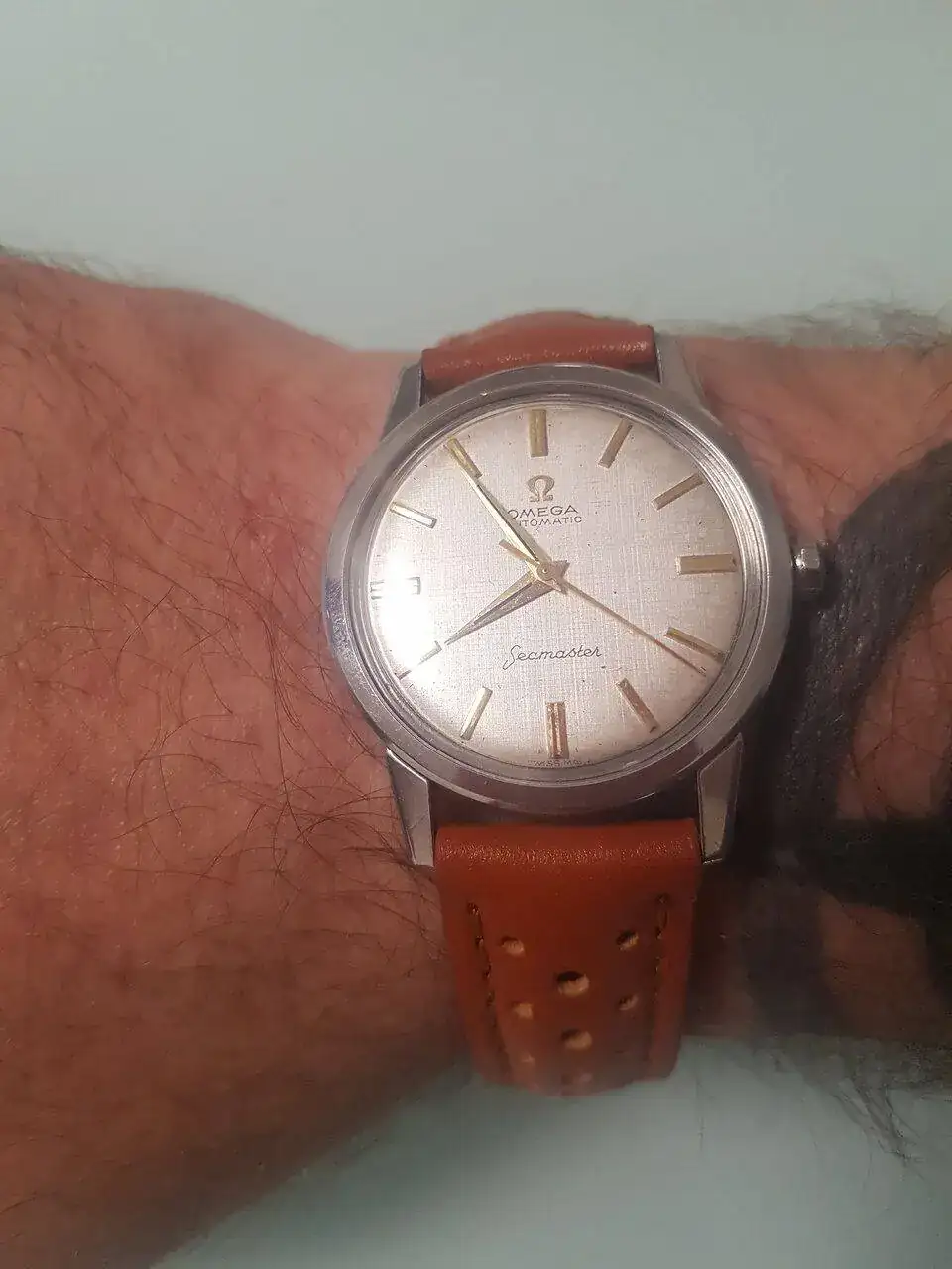 Hola de nuevo. Acaba de terminar el día, y os lo debo. Le ha encantado. No se lo esperaba por nada del mundo, y eso que me suele adivinar los regalos... No para de decir que le encanta y no deja de mirarlo. Hasta le he tenido que decir que se lo probara para hacer la foto. Y de verdad, a mí que me gustan los relojes grandes, en su muñeca se ve tan pequeño, que queda mejor que en la mía...