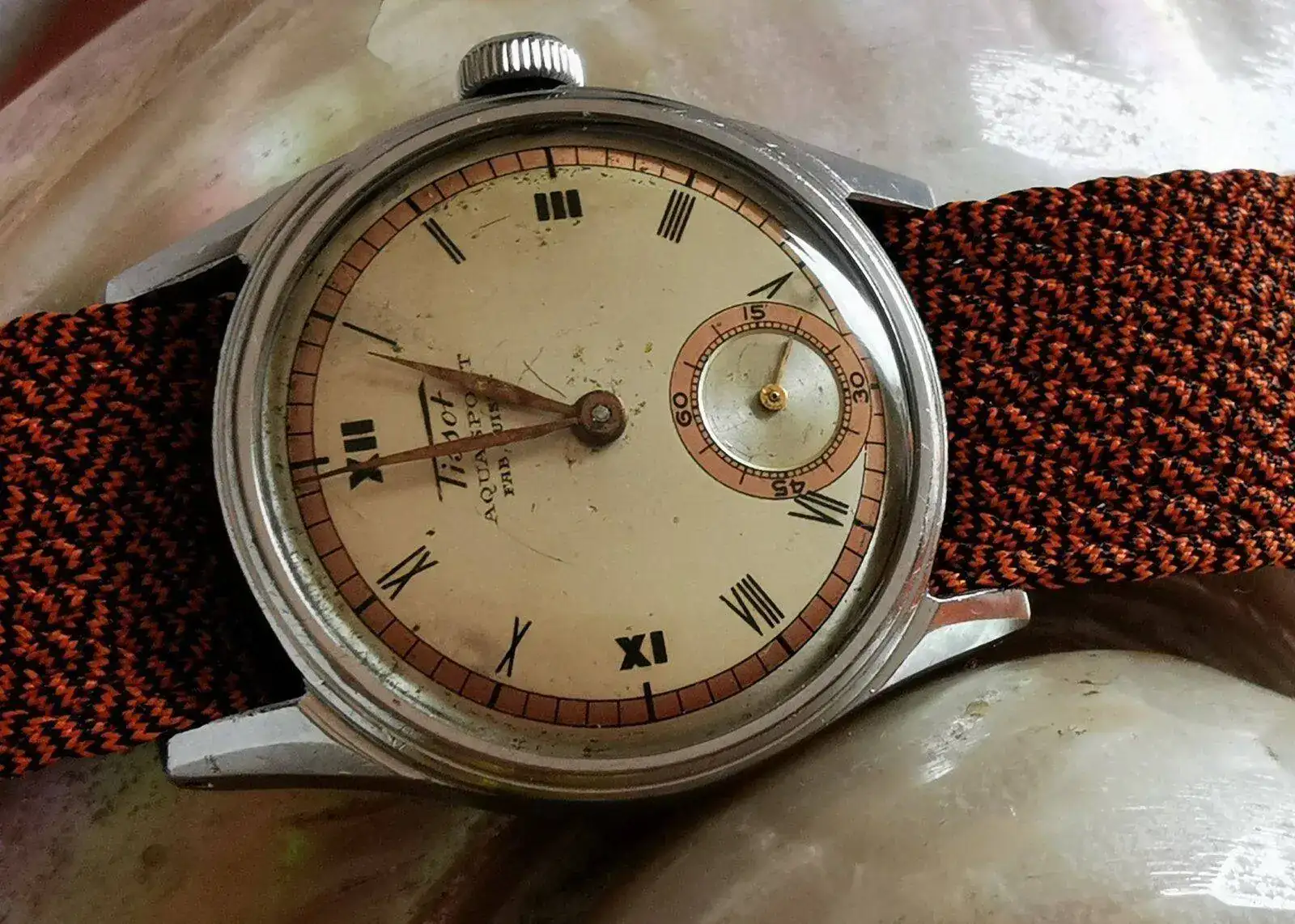Tengo un Tissot Aquasport que compré con una esfera destruida a la que reemplacé con una esfera 'sui generis ': me mandé un ejercicio de caligrafía con un 'Tissot ' bizantino. Los de Tissot si se enteran me matan...
