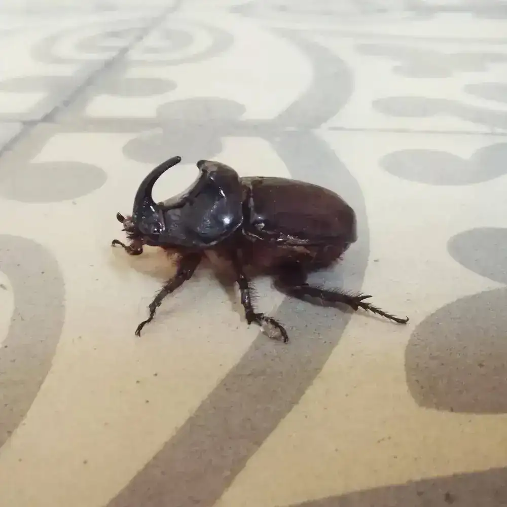 Pasote en el jardín de casa Mantis y un ciervo volador en alguna ocasionY una foto de divertimento, para enlazar el bichopalo de Canta con el mosaico de Sr.Audio: un escarabajo rinoceronte, Oryctes nasicornis, que se paseaba por el portal un día de este verano.