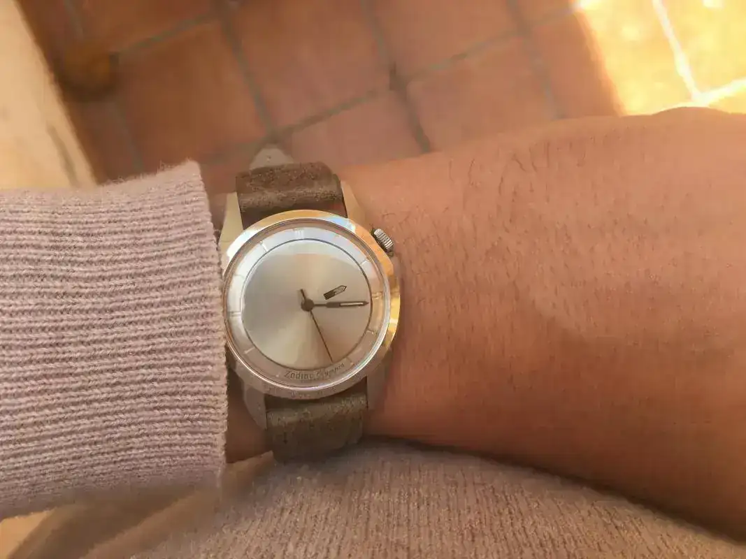 Está machacado, no va fino, pero evidencia que su anterior dueño lo utilizó profusamente, seguramente como reloj único, lejos de "rotaciones" y exposiciones para la galería, a las que hoy todos nos hemos acostumbrado![]()