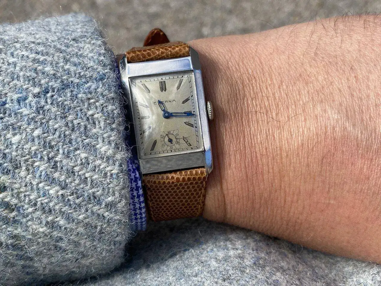 Recogido del relojero, lo más parecido a un Reverso que voy a tener en mi vida, supongo. Un Eterna tank que me encanta, es impresionante lo pequeño que se ve en la caja y luego lo bien que me lo veo en la muñeca. Cosas misteriosas.