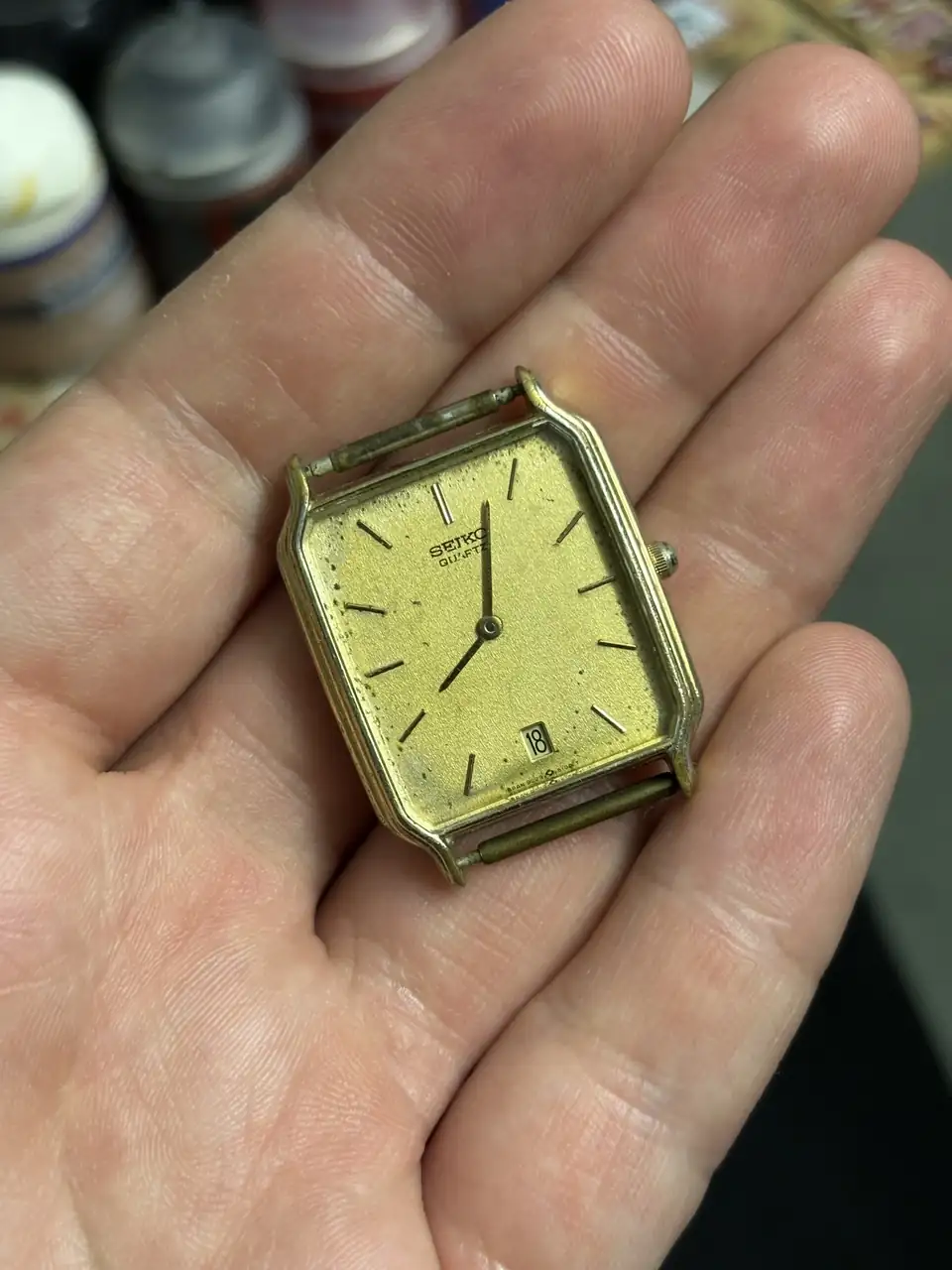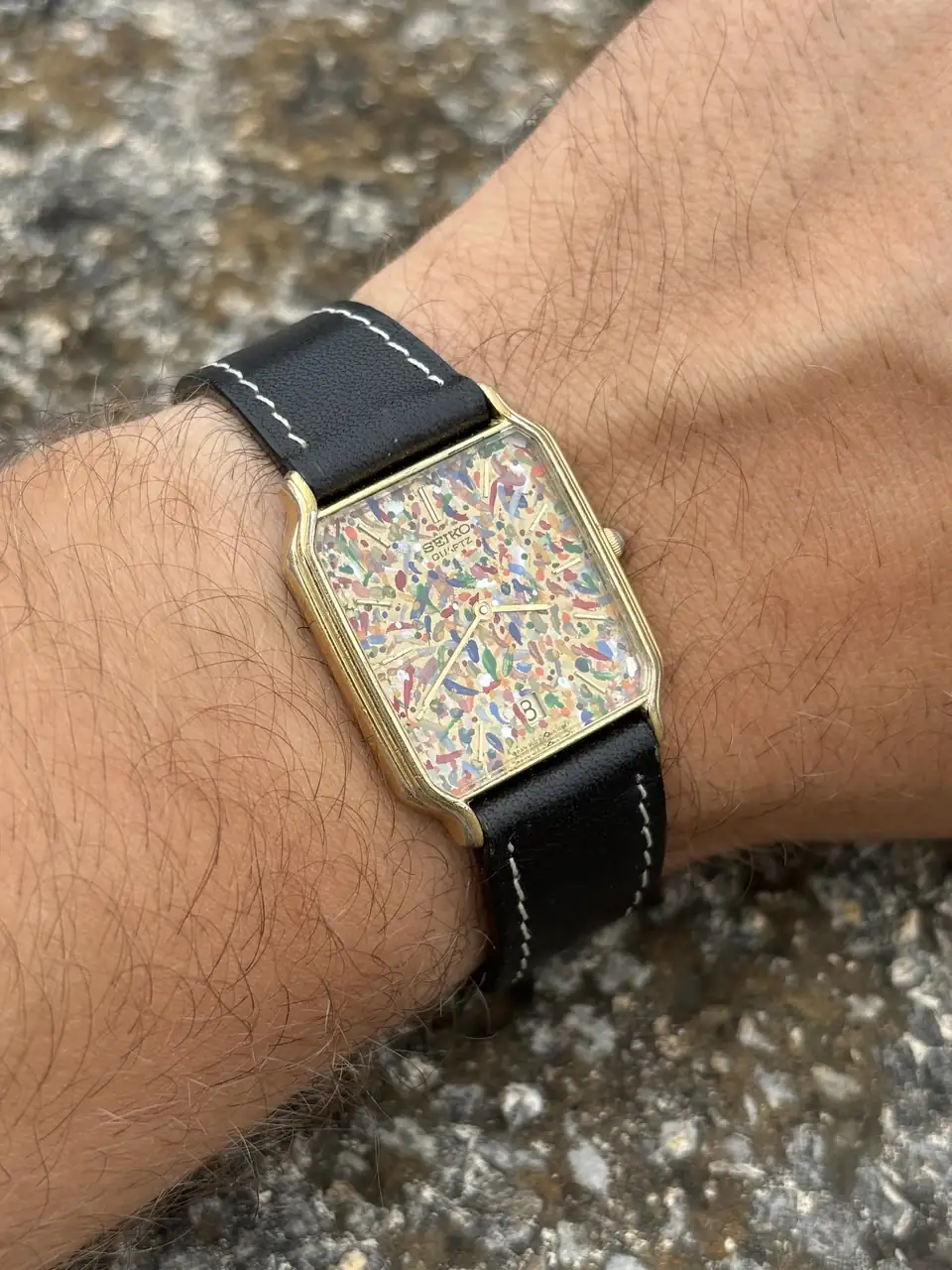 Mola ese Seiko👏👏.Pues ayer me reencontré con este seiko que tenía abandonado y decidí jugar a ser artista 😂. Era un reloj que no me gustaba y que estaba bastante feo de dial. Por eso me he atrevido a mancillarlo. Ahora es "único" 😜