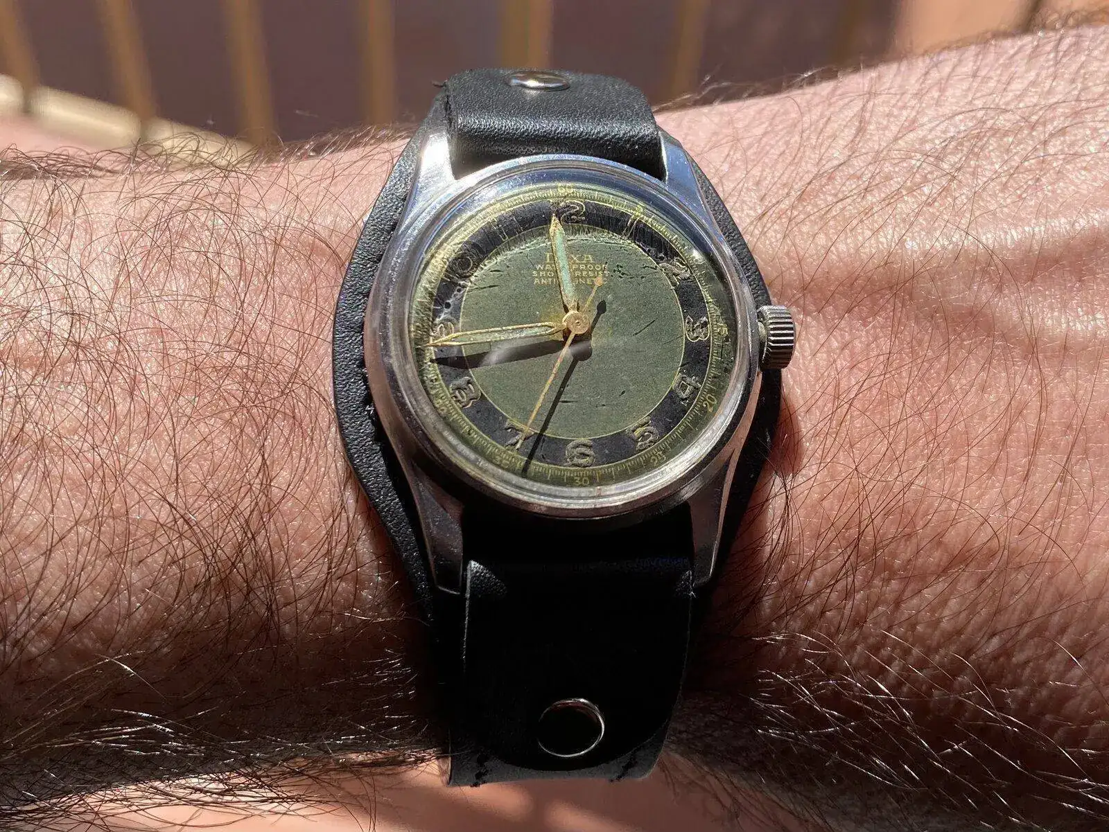 Mami que será lo que tiene el negro!!Buenas a tod&s, tras una carrera mañanera, hoy en mi muñeca este Doxa del 45. Luego paso. Un saludo