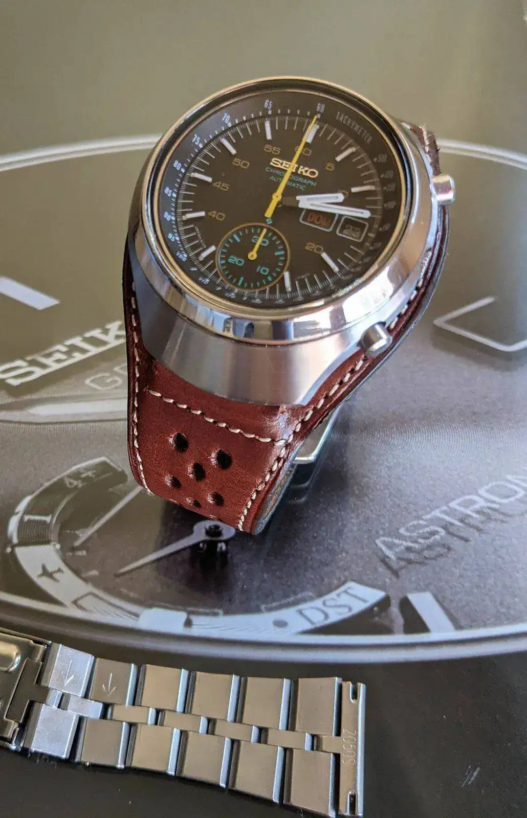 Muchas gracias yo también lo creo, la correa una hirsch rally, por cierto le cambie la hebilla ( plateada) por una dorada para darle más coherencia. Un saludo.Buena combinación reloj-correa.