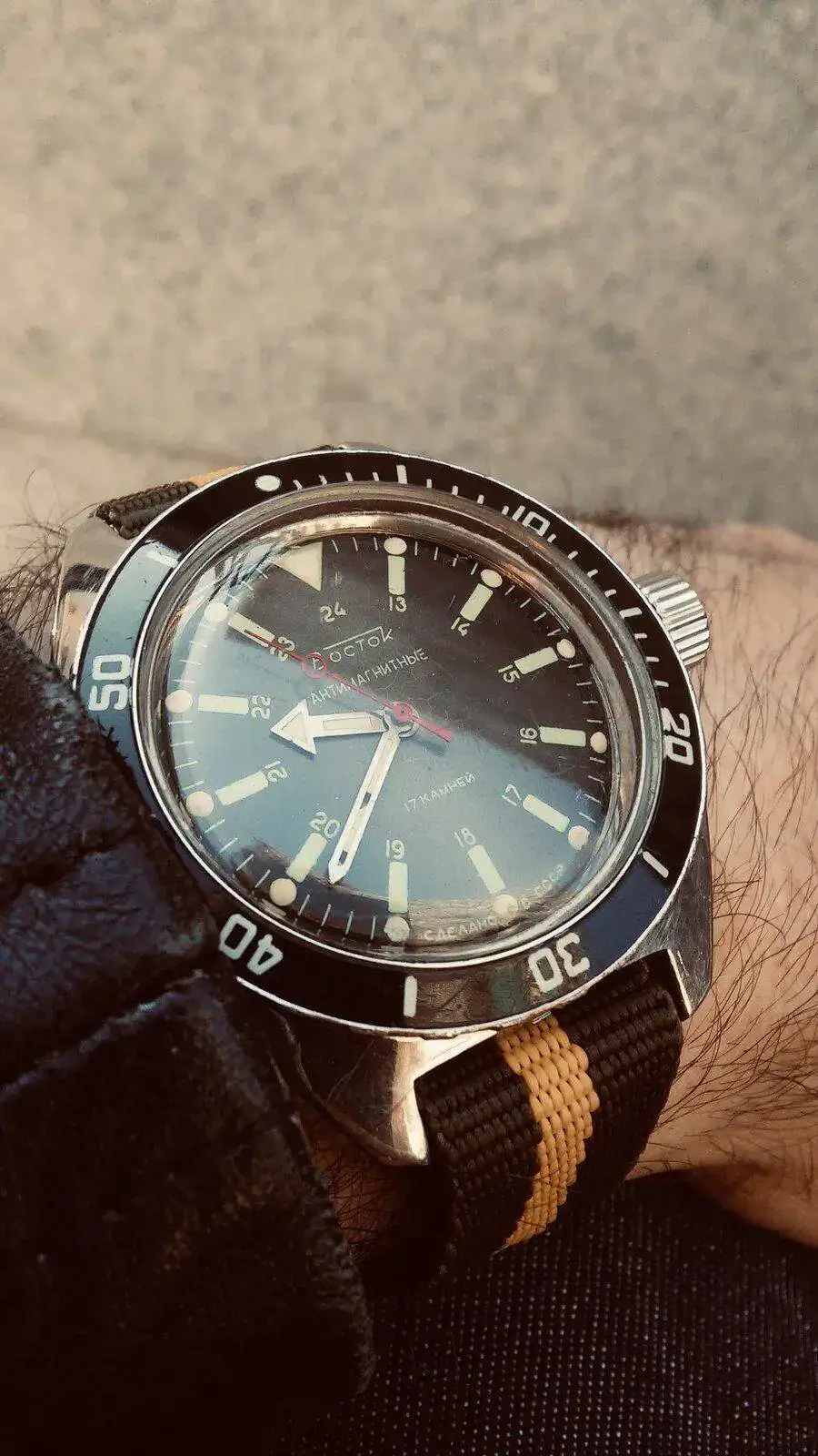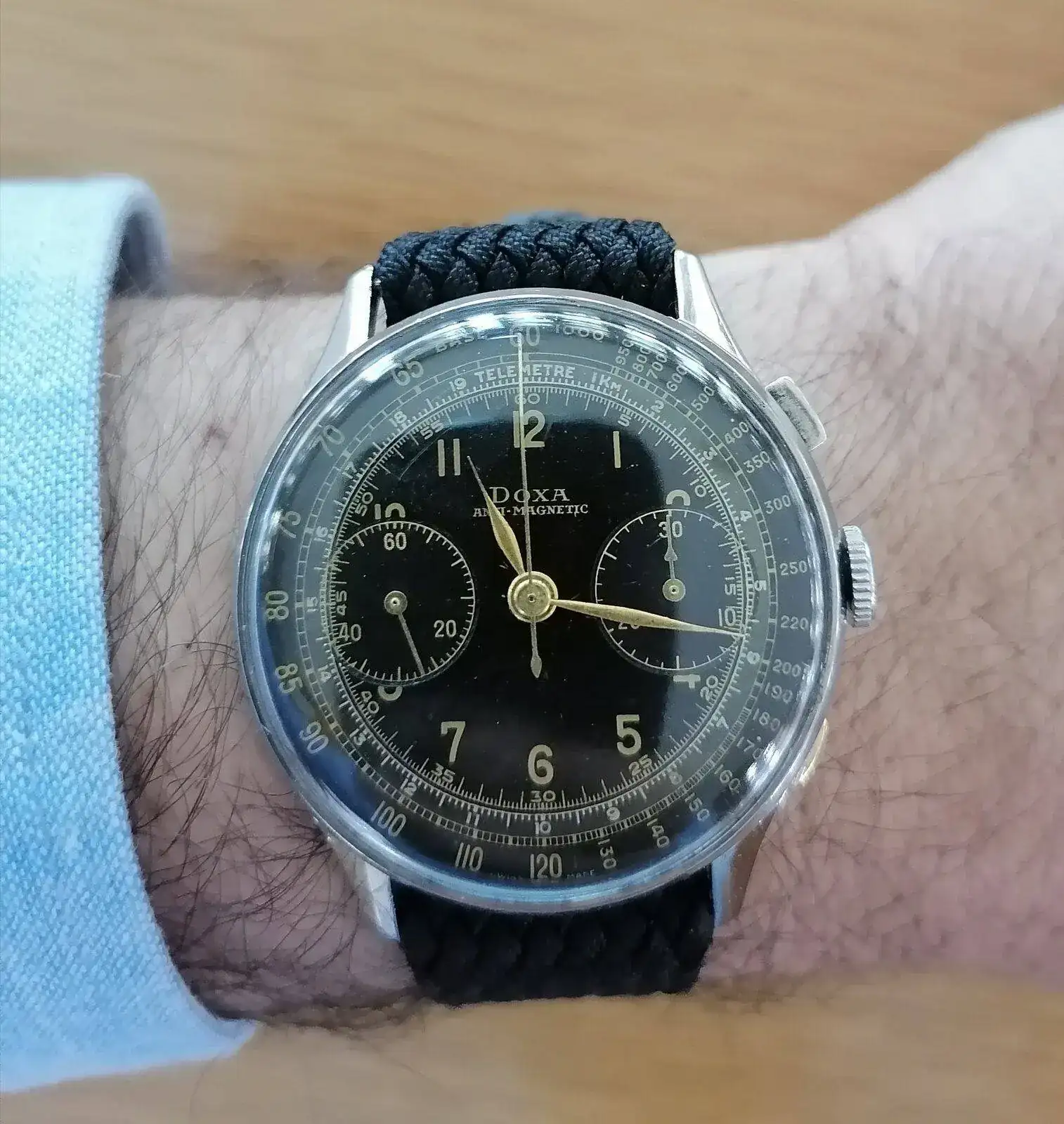 Me ha gustado eso: "...que nació vintage". Muy bueno.Vaya tela lo que ha salido hoy, sin lugar a dudas en hilo de RE más variopinto (rusos, japos, suizos) entretenido y curioso de ver. Todos preciosos y encantadores pero me permitis q destaque el doxa negrito crono por poco visto y elegante a rabiar. Hoy con este q nació vintage. Salud para todas/os.Ver el archivos adjunto 1373529