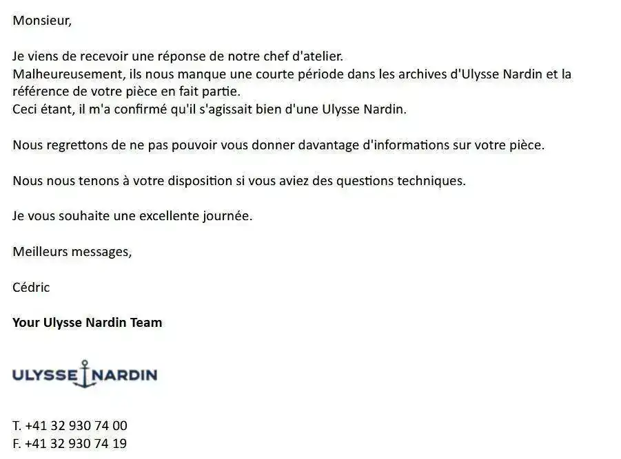 Gracias Kesar por enseñar el reloj completo. Que robusta la maquinaria en oro y plata, muy bonitas las asas y la tapa de bisagra el remate. Es un vintage excelente. Enhorabuena y que lo disfrutes mucho .Gracias Jahg, tus deseos son órdenes, el reloj monta un calibre Eterna 96 por la simple razón que en esa epoca Ulysse Nardin no tenía ningún calibre de pulsera. Ante la duda, consulté Ulysse Nardin y muy amablemente, y no cobran, me contestaron que aunque no me pueden dar detalles sobre el reloj ya que han perdido parte de sus archivos, si que me confirman que es autentico