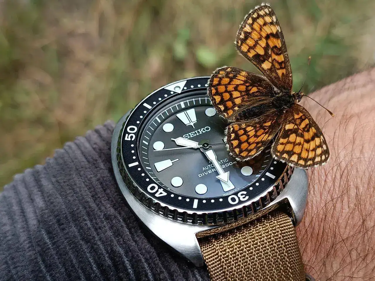 Fotazas Xabi!!. Que se pose una mariposa 🦋 en tu mano ya es difícil, que lo haga en tu reloj...:clap::clap::clap:
