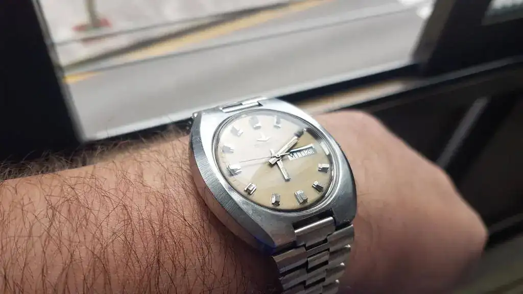 Muy bien acompañado por ese trío de japos, precioso el 6118 de Hrc; Zenith de Txema, hoy sin músicaOris de Reinares, Certina de Casiná, Tudor de Javier, Eterna de Verdigris, precioso Duward, un lindo y envidiable Pobeda de medida perfecta para mi muñeca