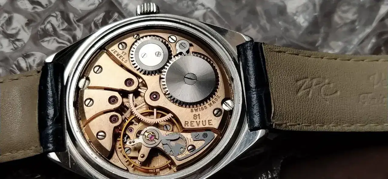 Sin duda lo más bonito de los relojes.Por fuera es cuco y está impecable, pero ese Revue hace bueno lo de que la verdadera belleza está en el interior: ese calibre es belleza pura 😍