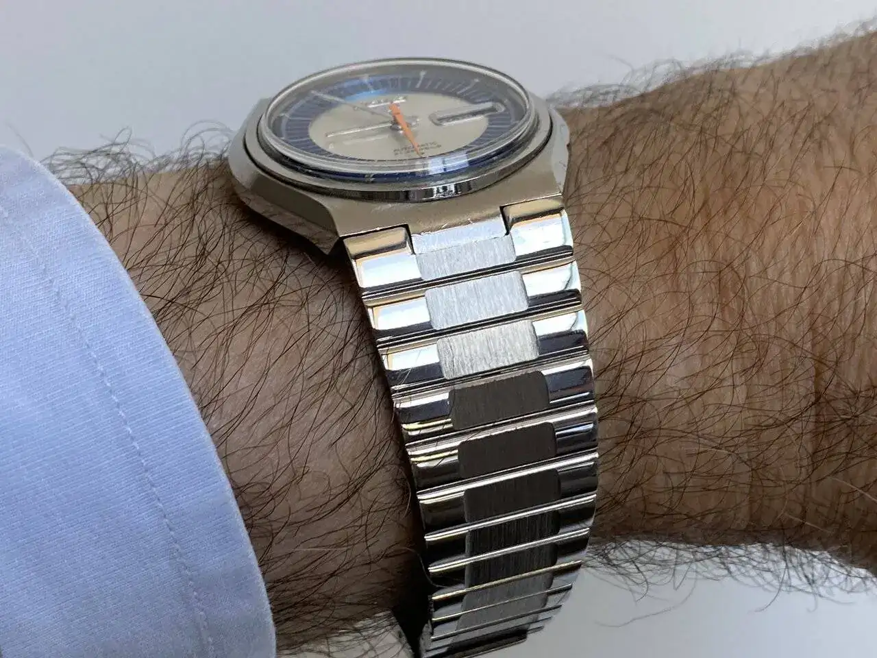 Esta semana la pasaré con un Seiko recuperado que estrena brazalete de su misma época, un Stelux adquirido en estado de nuevo, que le sienta como anillo al dedo.