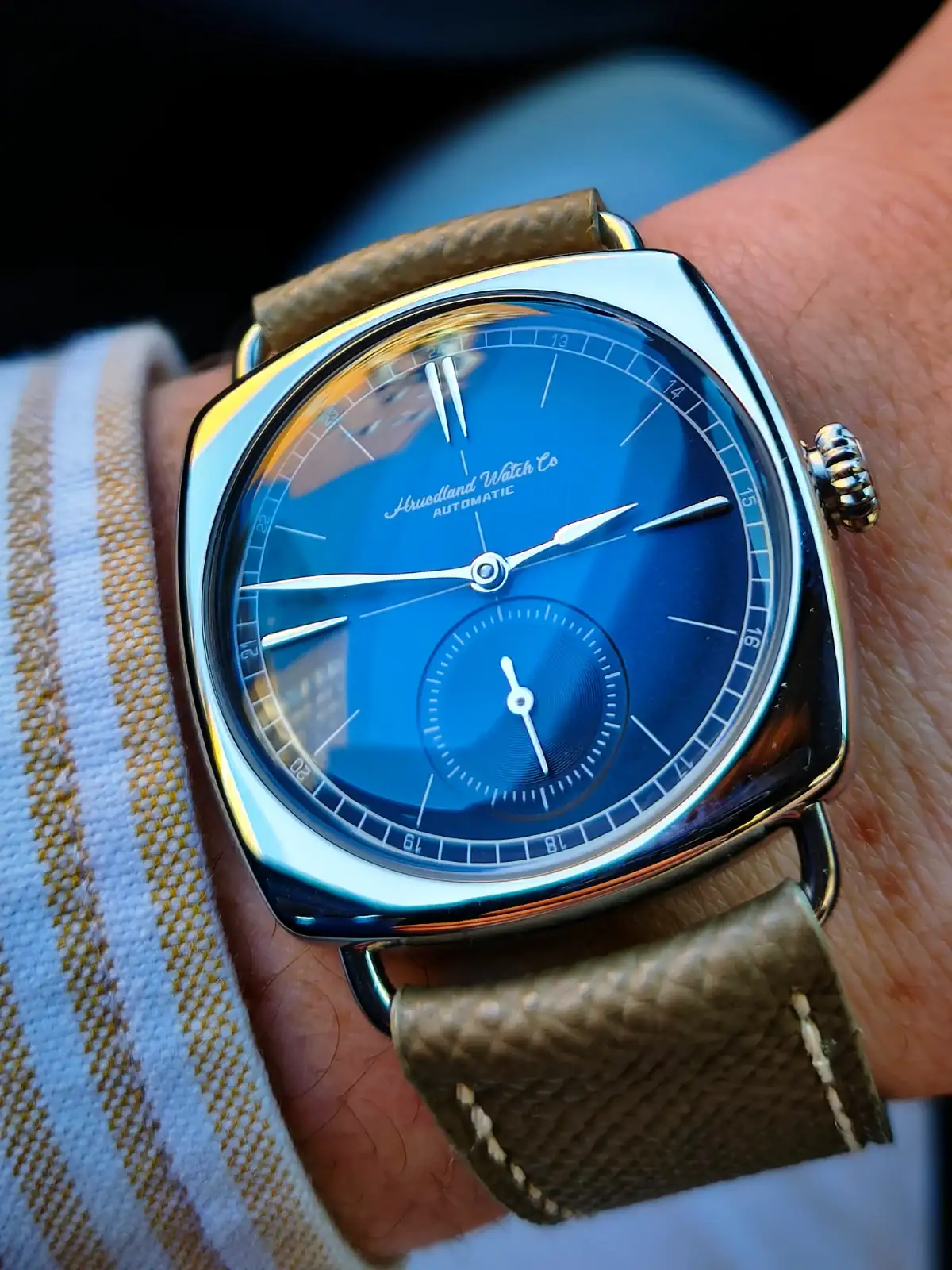 Son atornilladas a la trasera, lo que hace que sea un poco más polivalente que si las tuviese fijas. Me gusta también mucho su contenido grosor de 10.5 mm que se agradece en los automáticosRealmente bonito, compañero!. Esas asas son atornilladas o fijas?