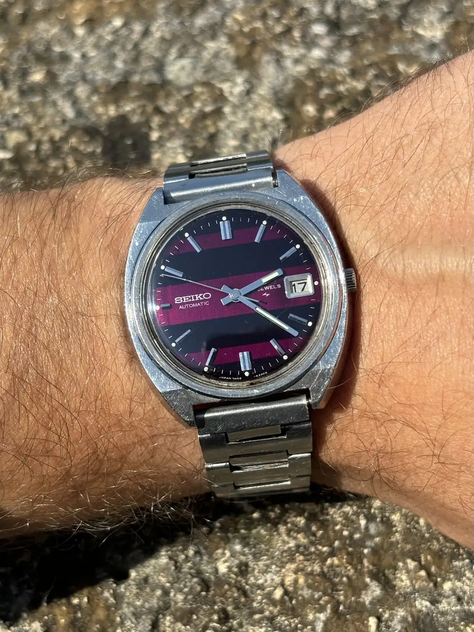 Junto con el Cyma de ayer se vino este Seiko de este color tan poco visto. Dependiendo de cómo le de la luz, es casi negro.