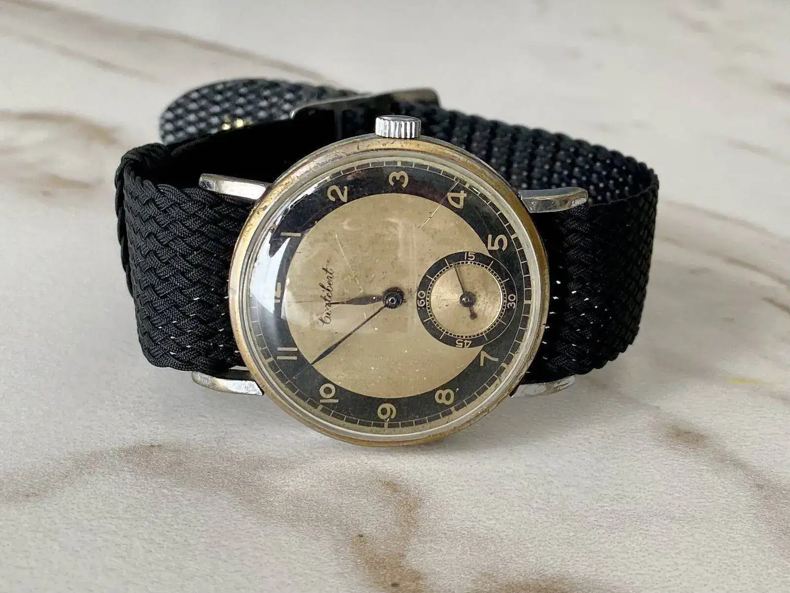 Delicioso Cortebert, preciosa esfera bicolor con ese segundero tan especial, precioso y la perlon le queda perfectaBuenas a tod&s, menudo desfile, hoy me acompañará este. Un saludo
