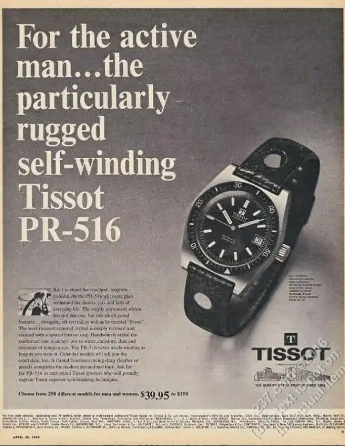 Gran epoca de la relojeria uno nonse endeudaba con un buen relojPrecioso diver de Tissot, aristedes, de los primeros PR-516, cuando todavía no se marcaban en la esfera.