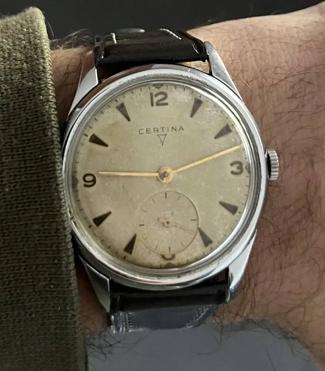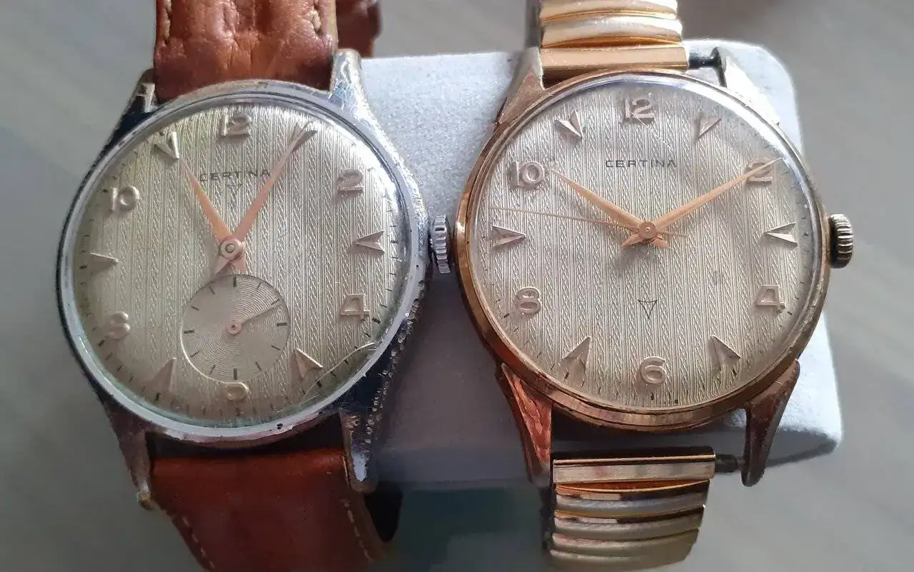 Gracias compi!. Si, tengo alguno mas con el triangulito. Muy, muy bonitos esos tuyos!Buenas ¡ Los certinas del triangulo creo que son de principios de 1950 y el triangulo iba donde había sitio pues parece que competía por el espacio con la esfera del segundero en algunos modelos![]()