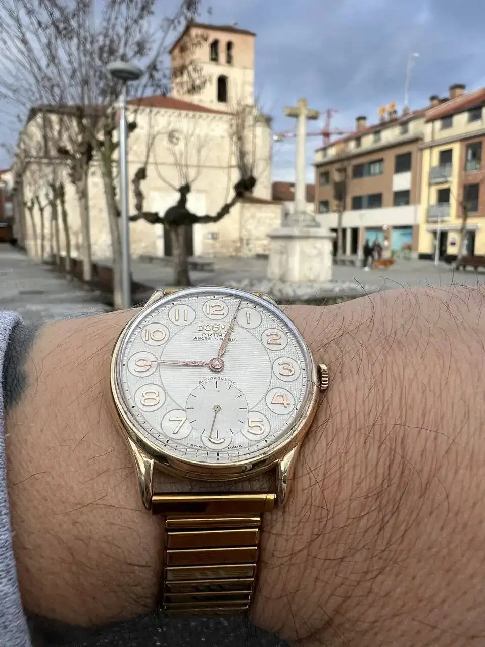 Muchas gracias compañero, tienen unas esferas muy bonitas a mi parecer ,de hecho me gustaría hacerme con algún otro, este lo rescate del rastro y aparte de llevarlo a revisión aproveché para que le dieran un ligero baño de oro que cubriera las zonas que estaban desgastadas.Curiosísimo Dogma haciendo alusión a los teléfonos antiguos. Dogma era una marca que realmente se empeñaba en hacer todo tipo de diseños e intentar salir siempre de lo convencional al contrario que muchas marcas con las que compartió época. Me encanta tu Dogma! Gracias por enseñarlo.