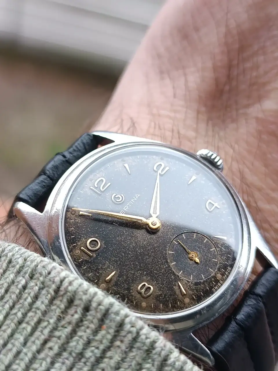 Si si acertaste, KF330 , mi primer reloj del rastro precisamente, seguro que parte del decolorado viene de pasarse horas al sol allí , aunque en vivo tiene más color , la caja seguro que sea un transplante .Espero haber acertado con el calibre del tuyo, desde luego tiene todas las papeletas para ser asi, excepto esas asas pero alguno he visto tambien y creo tenerlas parecidas.