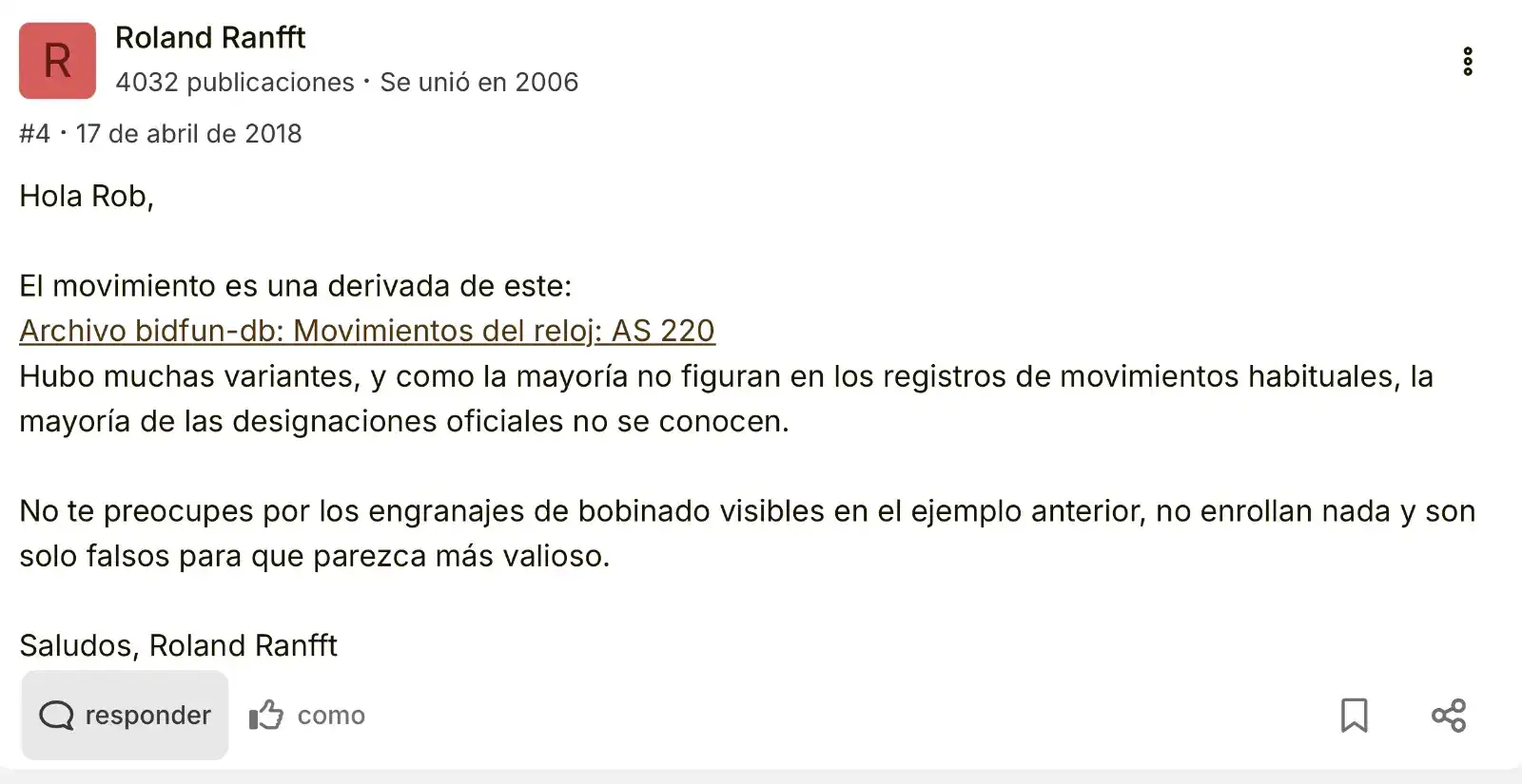pero no he conseguido averiguar de qué calibre exactamente se trata. Sí he encontrado una respuesta del Dr. Ranfft en el foro watchuseek, donde da una buena pista.