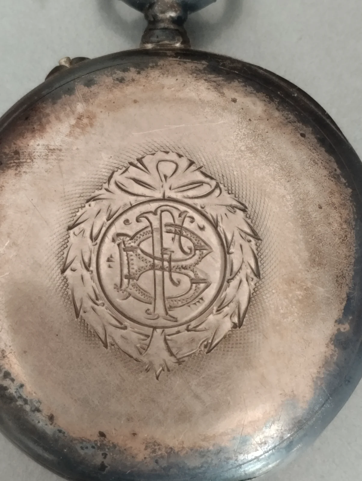 Esas son las iniciales del primer dueño, seguramente. Deberías pasarlo al subforo de relojes de bolsillo donde seguramente te informarán mucho mejor de todo.