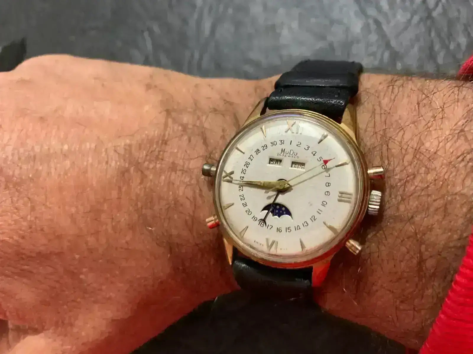 Con un brazalete original Tissot de la época, que era una de las opciones para este modelo. Raros y difíciles de encontrar. (Para otros, solo difíciles de ver).