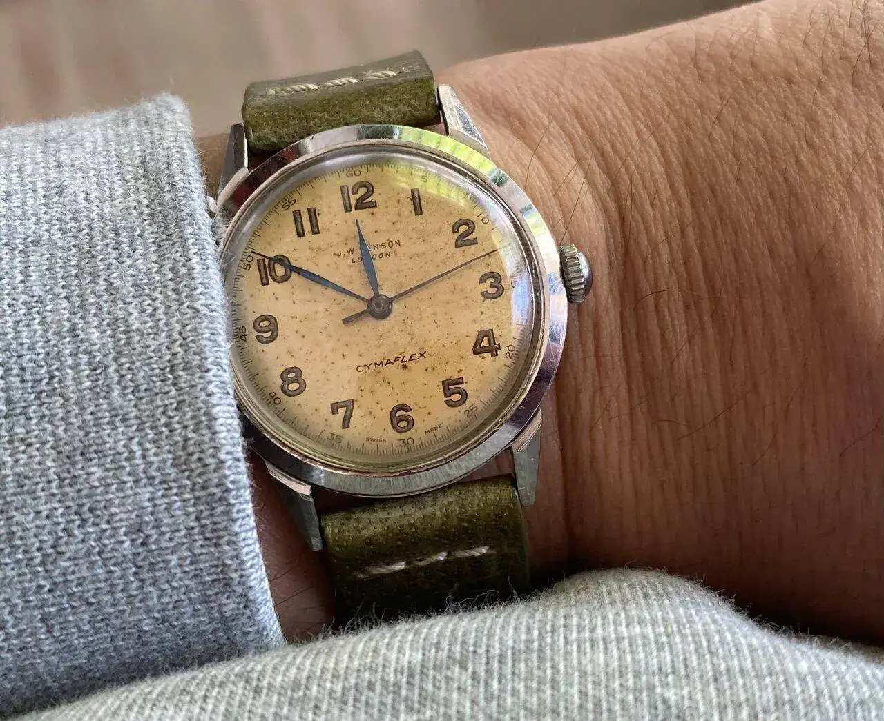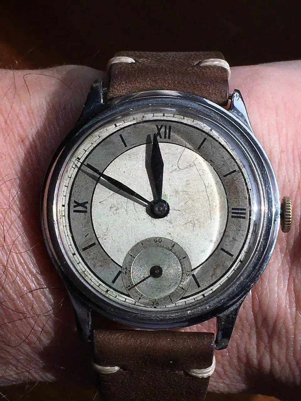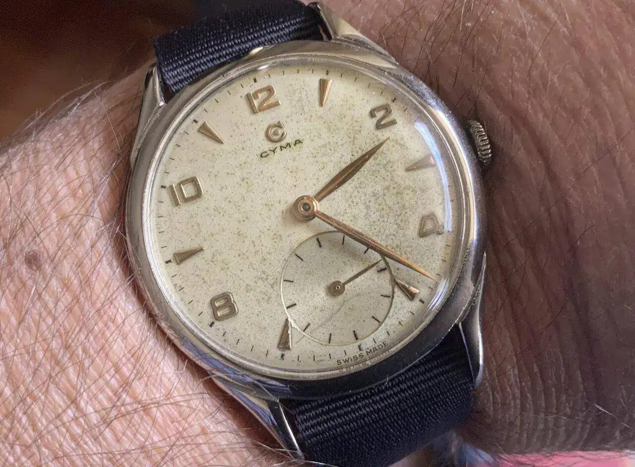 Hoy toca uno especial. Era un reloj del padre de mi suegra que tenía olvidado en un cajón. Al saber que me gustaban los relojes me lo regaló. Gracias a un secador de pelo y al calor corporal consiguió arrancar, pero se paraba en cuanto se movía. Así que ha estado 3 meses funcionando encima de una mesa hasta que hoy he probado y he visto que no se paraba