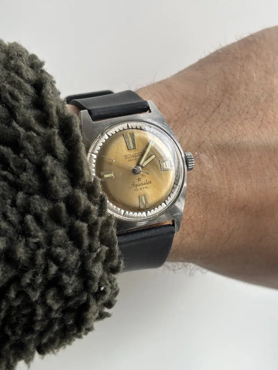 Es original seguro. Magnífico Aquastar. Es curioso que no vaya marcado en la esfera como Grand Air. En la trasera lo pone?. Supongo que será por las historias y malos rollos entre Duward y Aquastar.¡Eso pienso yo! Sugus de piña a que es el original 😂