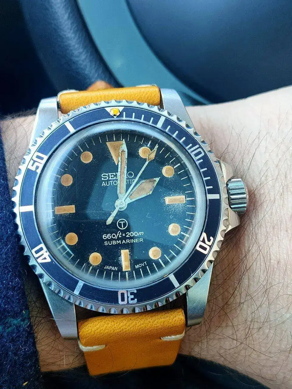 Yo hoy llevo este que parece vintage pero no lo es...está envejecido artesanalmente, la esfera, agujas y el bisel, lo ha hecho un amigo...yo solo le he puesto correa.