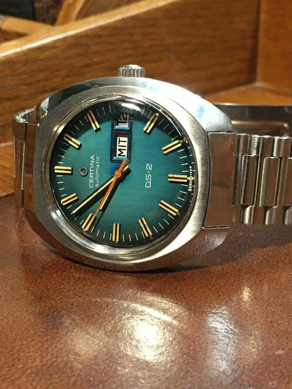 La correa es un coco verde algo durillo, pero que me gusta mucho cómo se complementa con la caja; ambas pasan por relativamente discretas, hasta que de pronto la incidencia de la luz resalta el tono verde en una escama o el brillo del oro en un biselado. Lo que no tiene ni pena ni gloria es la hebilla; soy muy "perra" para montar hebillas originales en las correas, lo reconozco