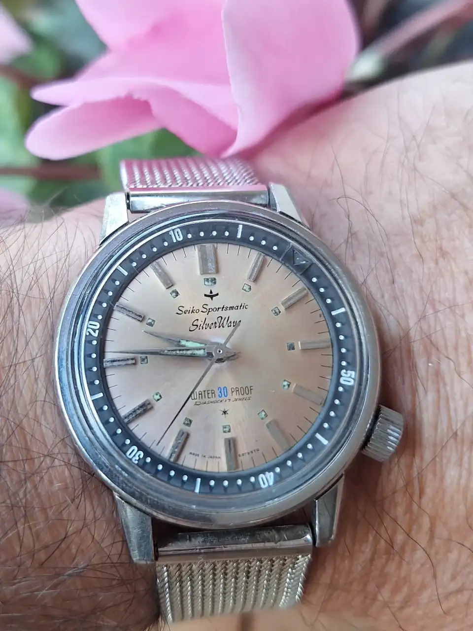 Me encanta el reloj, la esfera salmón tan especial, el ciclamen y la foto... todo requetepreciosísimo