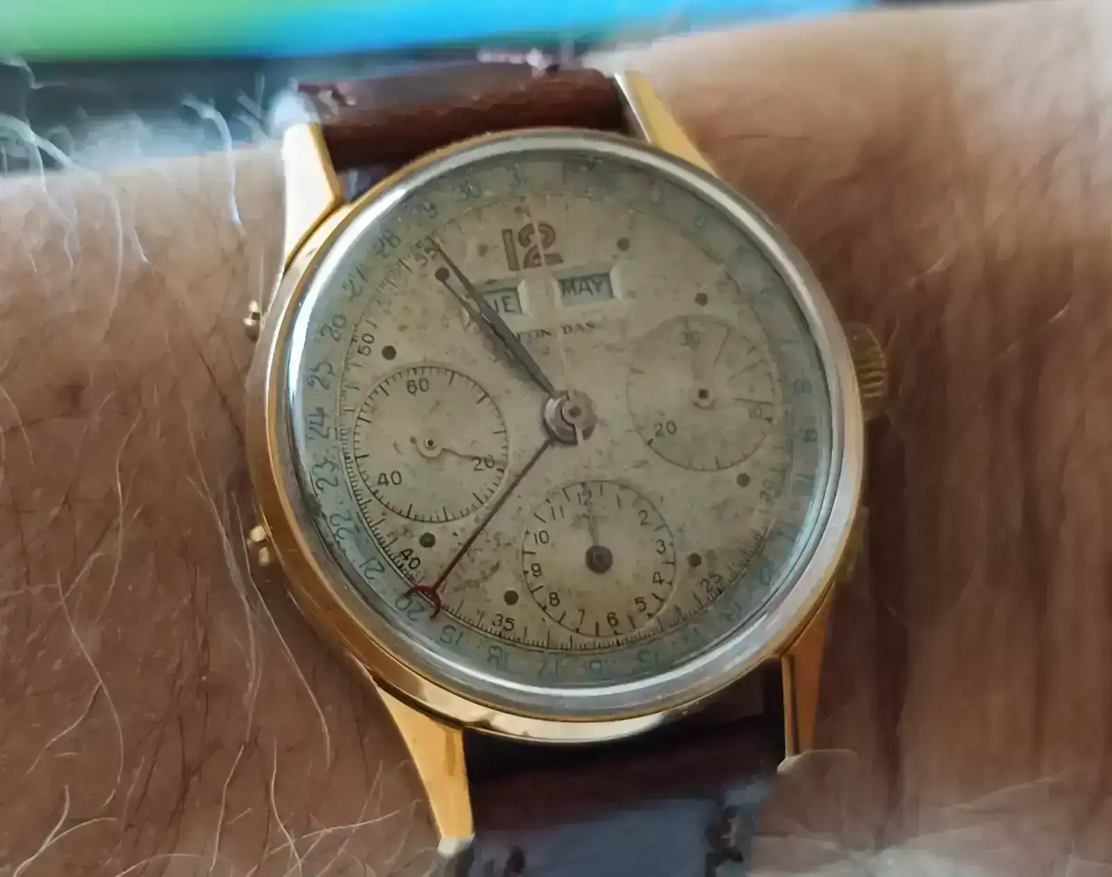 Pues muy bonito, esas correas con los niños son peligrosas, muy chulas aún así.Pues otro estreno gracias @yakokornecki que pensó en mí cuando andaba pescando relojes. Enanín y se les fue un poco la mano con el amarillo al relumenear las agujas, pero me encanta. Hace tiempo que quería un revue-sport de este tipo. Acero y con unos números preciosos. Y la correa en mi opinión es otro puntazo. Nunca había visto una igual. Espero que os guste. Saludos.
