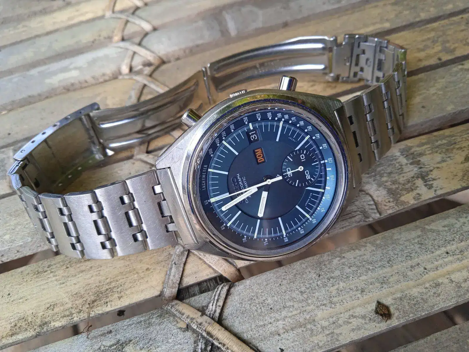 Azul hipnotizante. Es 6109-8009, de abril del 75, y tiene la peculiaridad de ser el primer modelo de Seiko fabricado fuera de Japón.Que azul eléctrico más intenso Kike